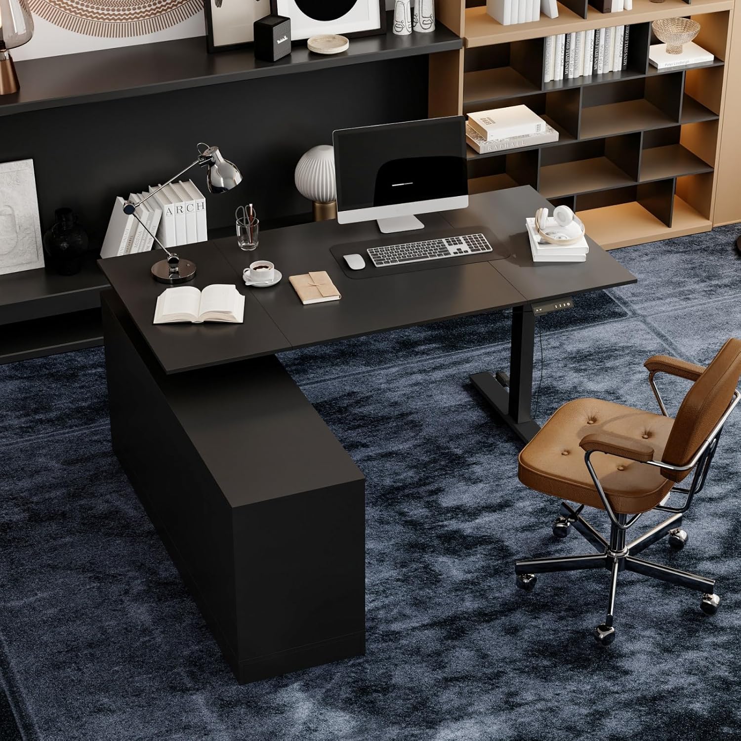 MOUMON 70.9” Electric Standing Desk with Drawer, Height Adjustable Executive Computer Desk with File Storage for Home Office, Sit Stand Desks, Black, 70.9”W x 31.5”D x 29.5”-44.1”H