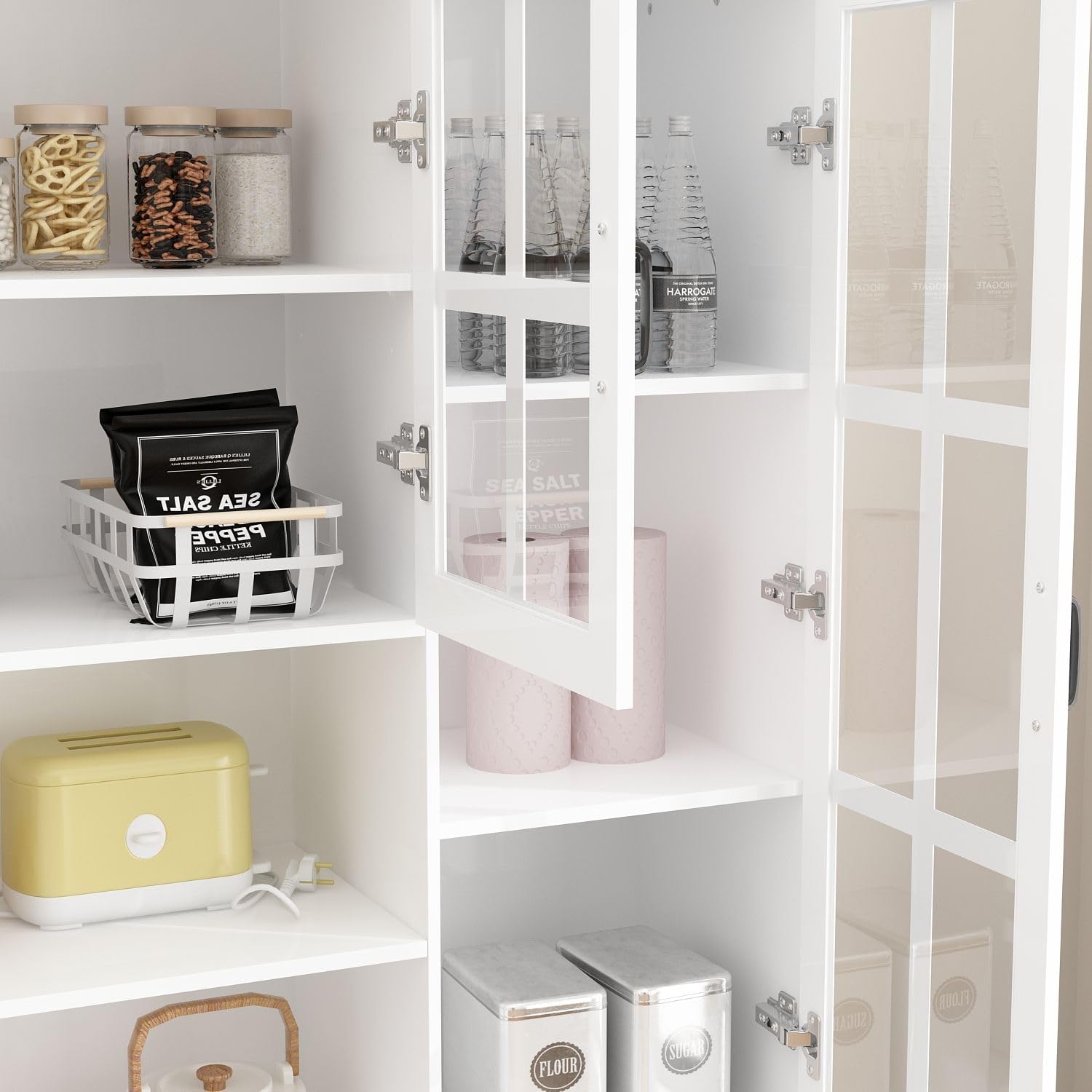 MOUMON Large Kitchen Hutch Storage Cabinet with Adjustable Shelves & Glass Doors, Pantry Organization and Kitchen Storage with Drawers, White (63”W x 15.7”D x 78.7”H)