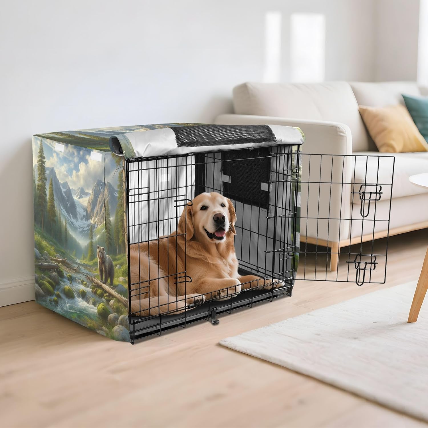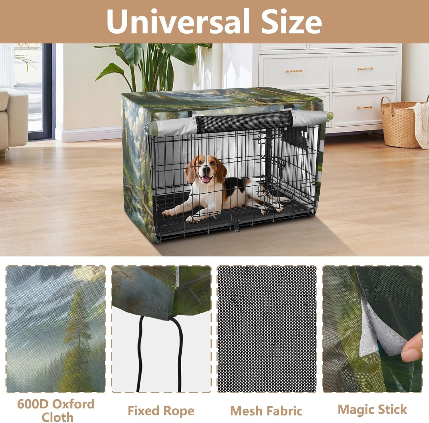 High-Quality Material – Crafted from 600D silver-coated oxford fabric, this kennel cover offers weather-resistant protection against rain, wind, and sunlight. It helps to keep your pet safe and comfortable, ensuring the crate remains in good condition.Fast and Easy Setup – The fastening system allows for a quick and straightforward installation process, making it ideal for pet owners who need an efficient solution for their dog crate cover.Breathable Design – With mesh windows on all sides, this dog kennel cover ensures consistent airflow, which helps keep your dog cool and comfortable while inside the crate. The breathable mesh also provides privacy and reduces stress.Sturdy and Wind-Resistant – Four tie-down straps securely fasten the cover to the crate, ensuring it remains stable even in windy conditions. This feature prevents the cover from being blown off or moved out of place.Convenient for Travel and Home – This versatile foldable crate cover is designed for both home and travel use, providing a reliable solution for your pet's needs. Whether you're indoors or on the move, it offers excellent protection for your dog’s crate.