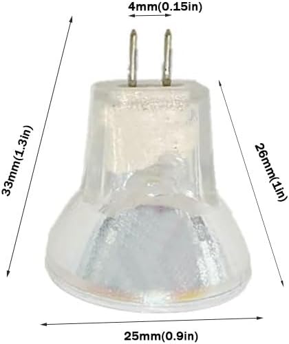 Lamp body material: glass (without cover)Voltage: 6V 12V Power: 5W 10W 20W 35WDiameter: 25 mm, total length: 33 mm, distance between legs: 4 mmEasy to install: MR8 with Bi-Pin GU4 base, plug and play.Lifespan: Reduces frequent replacement of bulbs. Reduced heat, greater energy efficiency