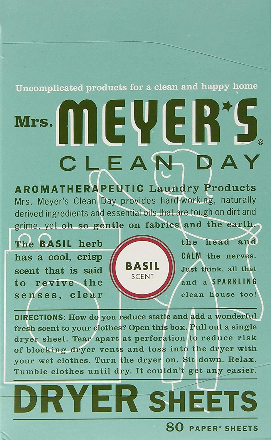 Mrs. Meyer's Clean Day Dryer Sheets work as fabric softeners, while also providing a special, singular scent for your entire home. Basil has a cool, crisp fragrance that is uplifting & grounding, familiar & exotic – all at one time. Such an inviting herbal smell, the garden's friendly boost of green. Our dryer sheets are a perfect way to reduce dryer static and add freshness to your laundry. The compostable and recyclable dryer sheets are made without parabens, animal derived ingredients, and phthalates. Our dryer sheets contain plant-derived softening agents and other thoughtfully chosen ingredients on a biodegradable paper sheet. Also available in other garden inspired scents and products such as body lotions, liquid hand soaps, candles, and so much more! Mrs. Meyer's – rooted in goodness.