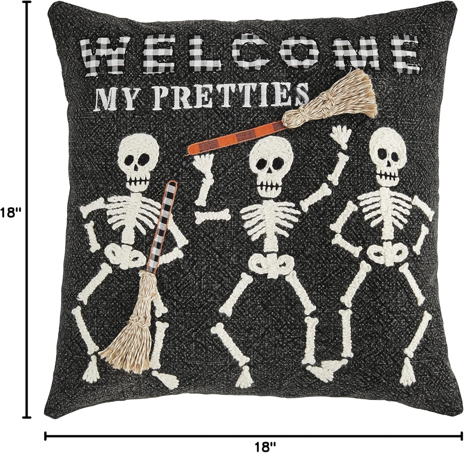 Appliquéd cotton pillow with embroidery and yarn details. Zipper closure.