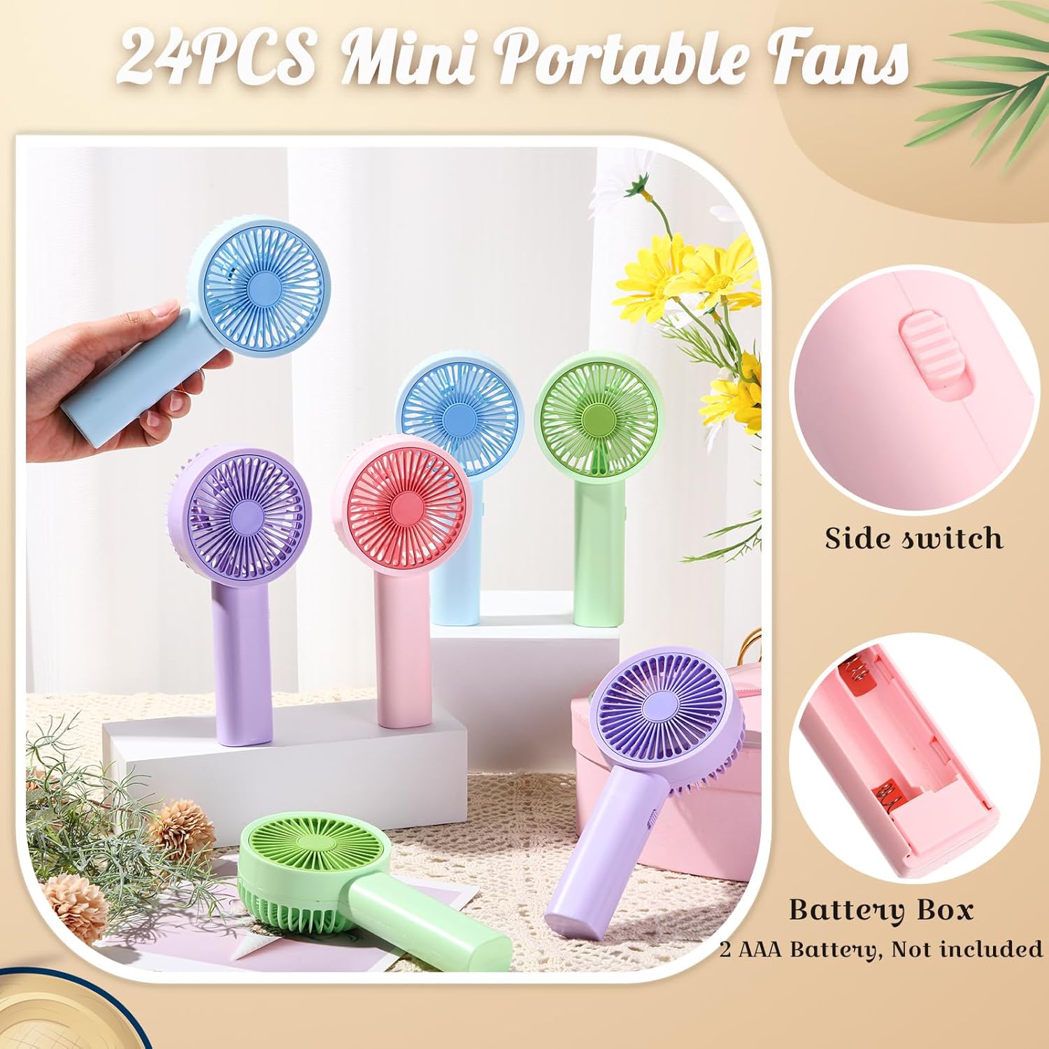 | Included Components | 24 x Mini handheld fans |