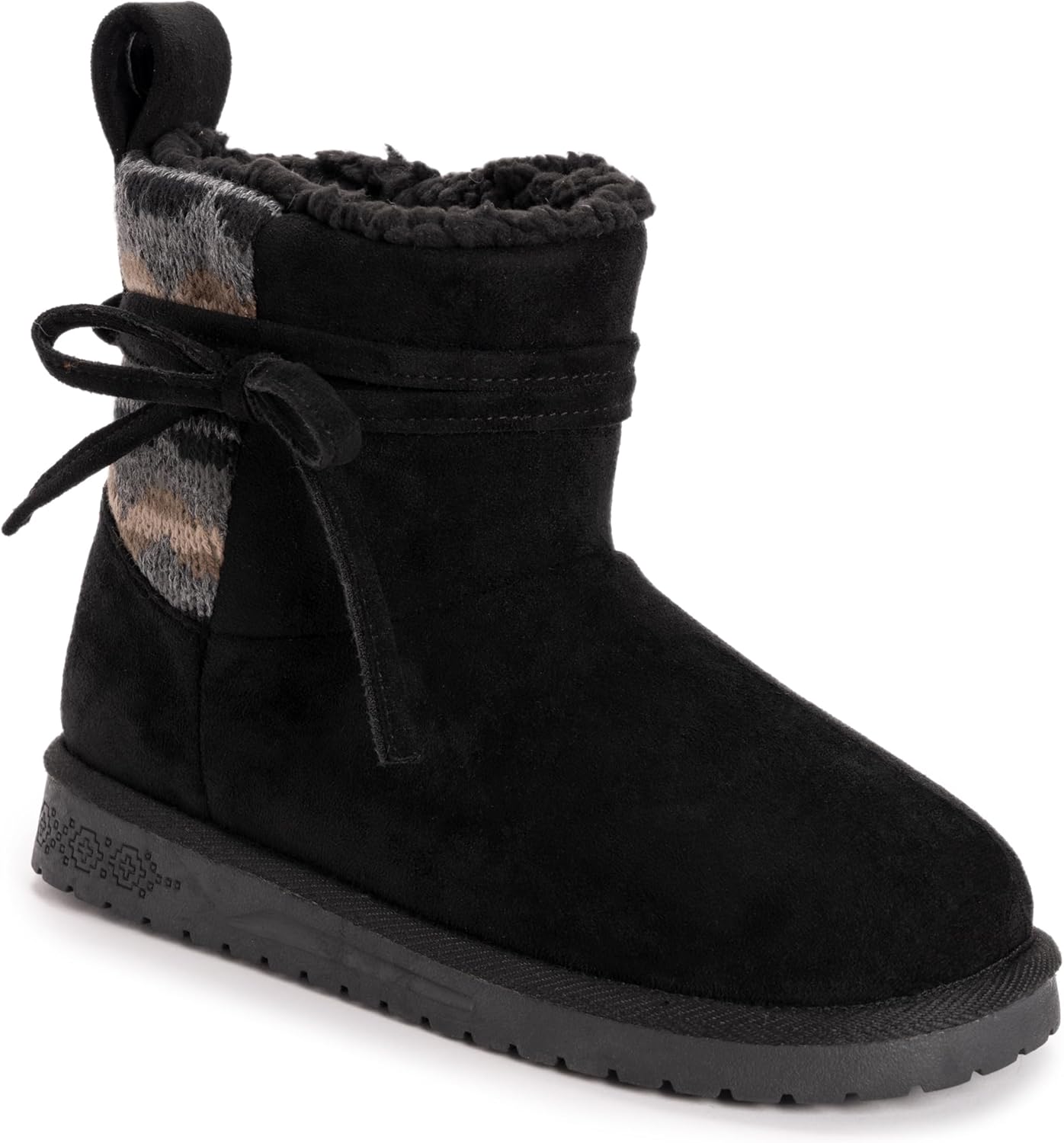 Charming and cozy Essentials by MUK LUKS Teenie Boots are an attractive way to stay warm. Lovely knits and adorable tie detail enhance your style while tough sole maintains foot warmth and dryness. Clean with a damp cloth, avoid bleach, and lay flat to dry.