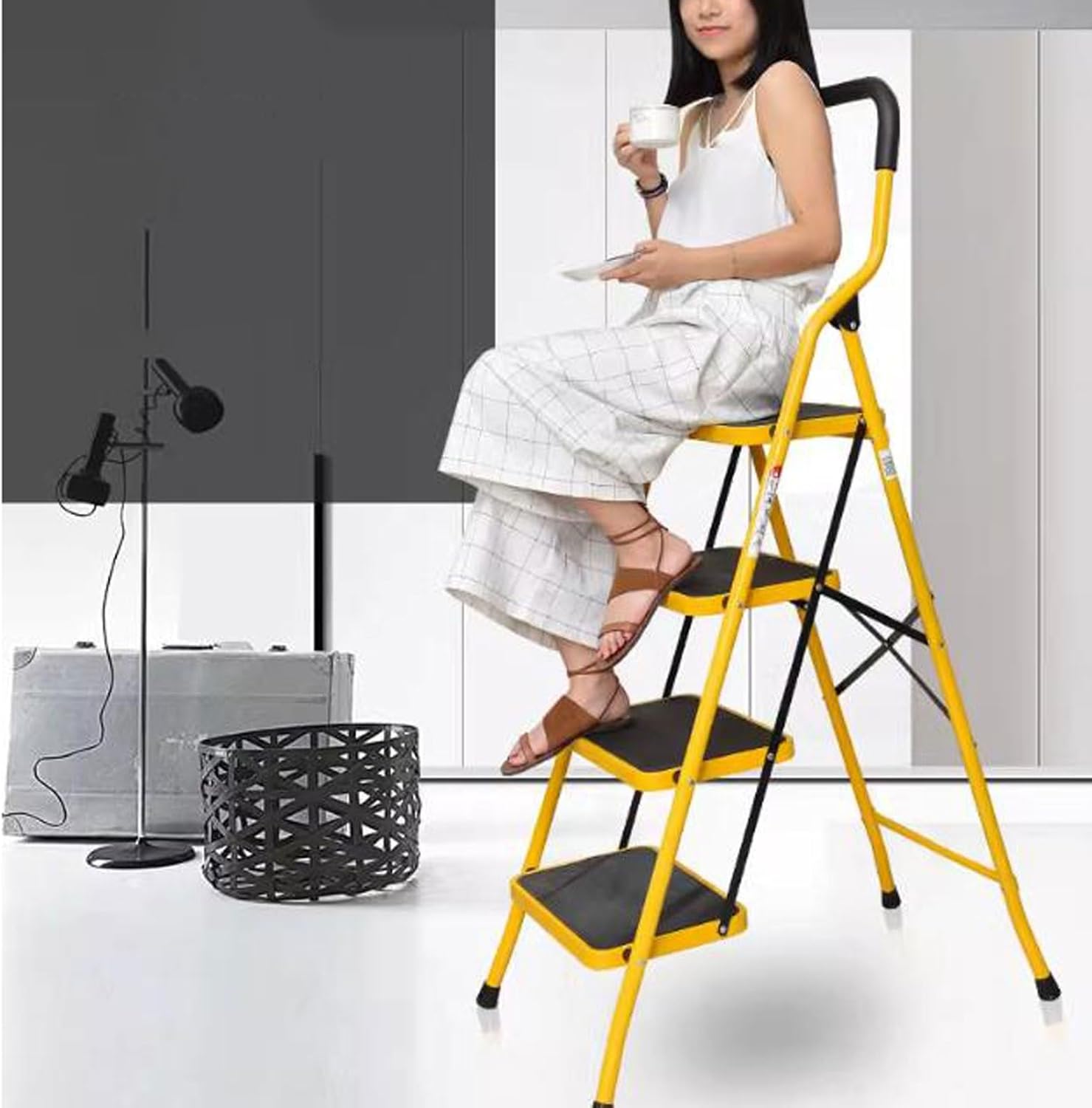 The perfect combination of stairs and clothes rack.Specifications:Color: YellowStep: 2 Step/3 Step/4 Step/5 Step Ladder(Optional)Material: IronSize: As is shown in pictureMax capacity: 150kg/ 330lbsPackage Includes:1 x Foldable LadderSome tips to know in advance:1.The color of the product is based on the picture taken. Due to the shooting light, the lighting of the environment where the product is located, and the pixels of the mobile phone/computer device, the color will be different. We have tried to restore the color of the product as close to the real color as possible.2. the package only includes the ladder, not including the other accessories.3.Due to manual measurement, there may be a measurement error of 1-3cm in size.
