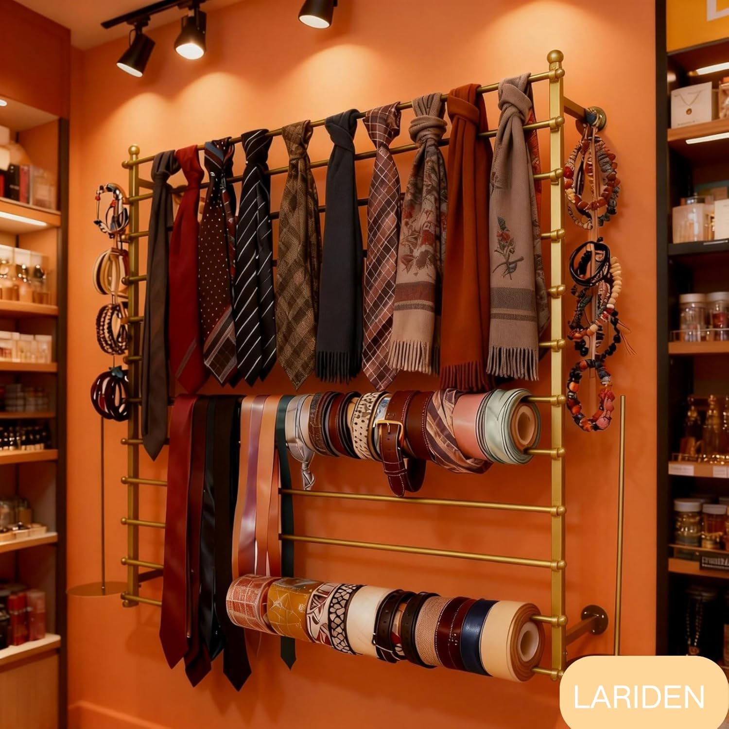 DetailsRound Ball Decoration: The round ball decoration on the top makes the product more beautiful and atmospheric.U-shape Hanging Rod Hook: This design not only makes the installation more convenient but also effectively prevents the hanging rod from falling.ApplicationThis product is suitable for both domestic use and commercial use. It can be used to store wrapping papers, ribbons, fabric rolls, vinyl rolls, towels, scarves, silk scarves, shawls, ties, and neckerchiefs. It is suitable for gift shops, florists, retail stores, family bedrooms, bathrooms, etc.SpecificationMaterial: IronColor: GoldProcess: Nano High-Temperature Baking PaintStyle: ModernAssembly Required: YesMounting Type: Wall MountedNumber of Hanging Rods: 12Product Size: 120x20x 120cm/47.24x7.87x47.24inPackage Size: 125x25x 10cm/49.21x9.84x3.94inMax. Load Capacity: 36.29kg/80lbsGross Weight: 5.6kg/12.35lbsNet Weight: 5.32kg/11.73lbsPackage Included1x Wall-mounted Ribbon Holder1x English Installation DiagramOther Accessories for AssemblyNotes1. Please read the operating manual completely before use. And pay particular attention to the safety instructions included.2. Please note that this product does not contain items such as ribbons or scarves.Please allow the slight color difference caused by the shooting light and 1-3cm error due to manual measurement, and make sure you do not mind before ordering.