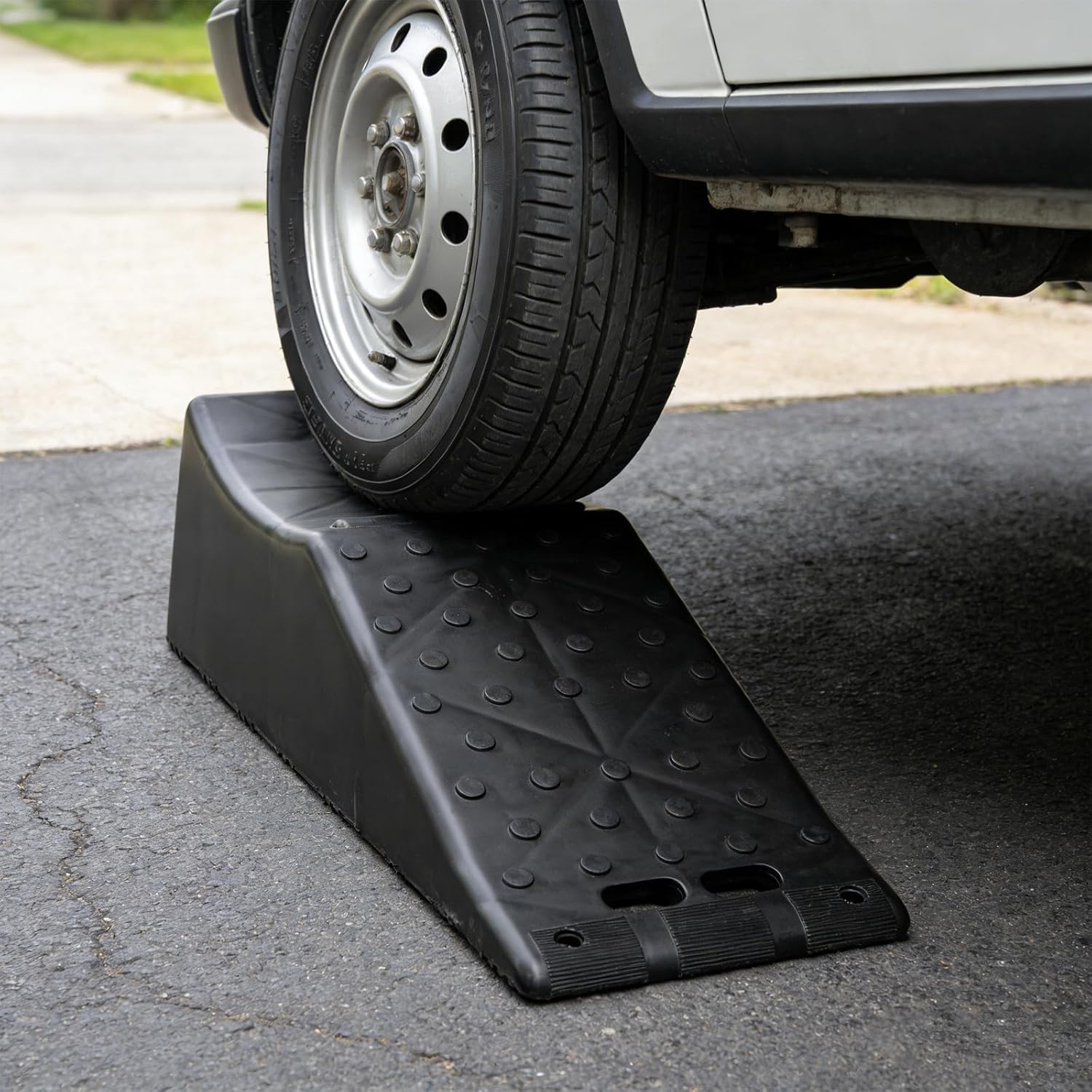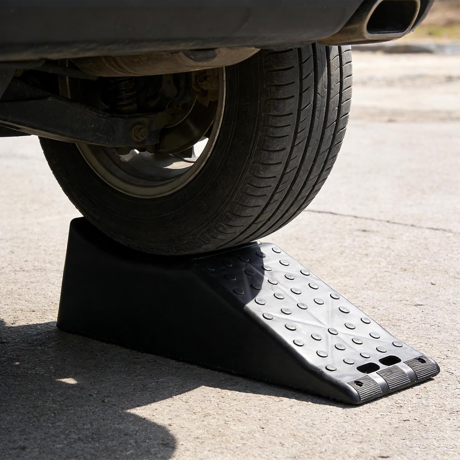 Multi Vehicle Wheel Platform For Smooth Tire Replacement Easy Setup And Tough ABS Build Features : Portable hill Design : This 5.5 inch tire lifting tool is designed for easy tire maintenance on flat surfaces , supporting up to 500kg for consistent use with cars or light trucks Traction Feature : The built in hill stopper prevents unwanted movement , with textured face for secure vehicle positioning during tire changes Quick Setup : Tool assembly takes less than 30 seconds for efficient tire service , ideal for daily commuters and home users needing simple Multi Vehicle Use : Works with motorcycles , compact cars and other two wheeled vehicles , perfect for home repairs or unexpected roadside needs Strong ABS Construction : Heavy duty proposals three times the existence of standard steel ramps while remaining lightweight , excellent for frequent tire maintenance Specifications : Product name : 5.5-inch portable hill stop Product substance : ABS Product size : as shown in the picture Package Includes : A portable hill stop Note : Before using the accessory , please check if it is compatible Pay attention to the storage methods