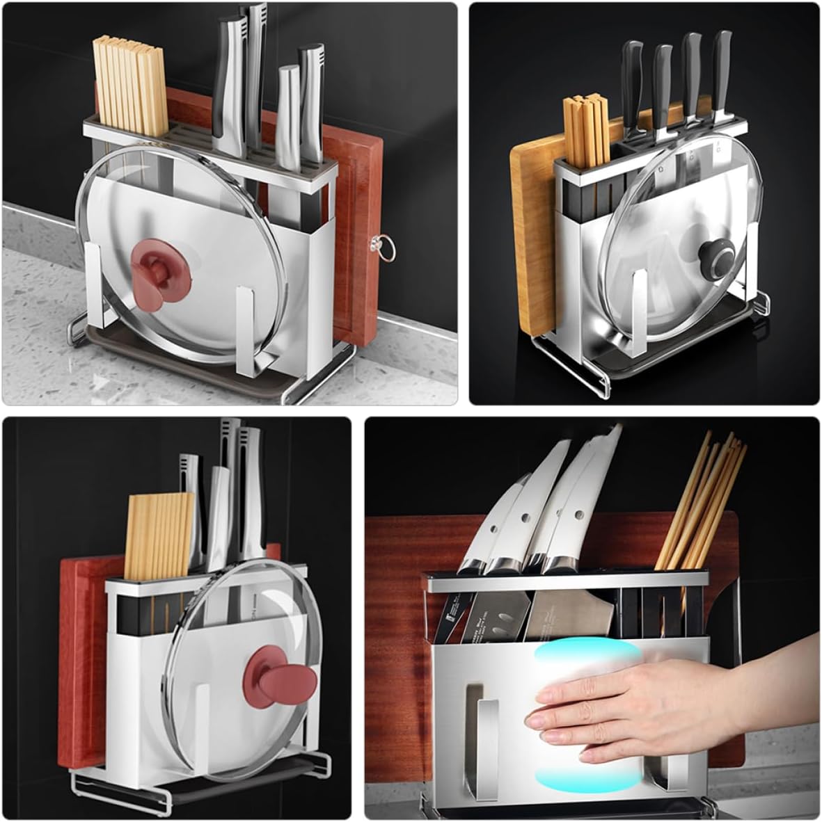 Package Include 1 x storage rack Characteristics -Color: As Shown Cutter Rack -Size: About 25.00X13.80X23.00cm/9.82X5.42X9 Knifes Rack. -Material: stainless steel