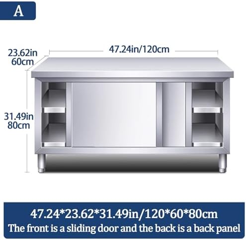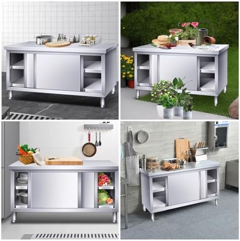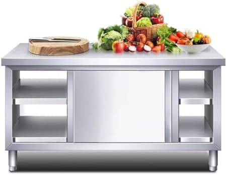The Stainless Steel Work Table is the perfect addition to any kitchen, whether for home chefs or professional cooks. This versatile kitchen prep table features a spacious double door storage cabinet, making it ideal for organizing utensils, ingredients, and equipment. Its freestanding, mobile design allows for easy repositioning, enhancing flexibility in any culinary environment. Crafted from high-quality stainless steel, this work table not only ensures durability but also offers a hygienic surface that is easy to clean. This feature is particularly valuable for meal preparation and food service, as it helps maintain cleanliness while you work. Whether you're preparing a family meal or managing a bustling restaurant kitchen, the ample workspace provided by this table allows for efficient workflow and multitasking. Imagine the convenience of having everything you need within arm’s reach, all while maintaining a tidy and structured kitchen environment. With its sturdy construction, this work table can handle heavy-duty use, making it a reliable companion for all your cooking endeavors. Upgrade your kitchen with this multifunctional prep table and experience the difference in organization and efficiency it brings to your daily cooking tasks.