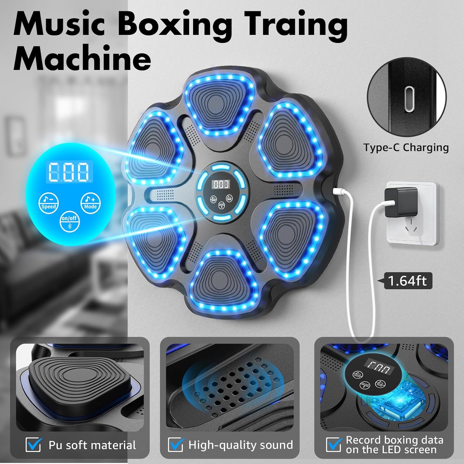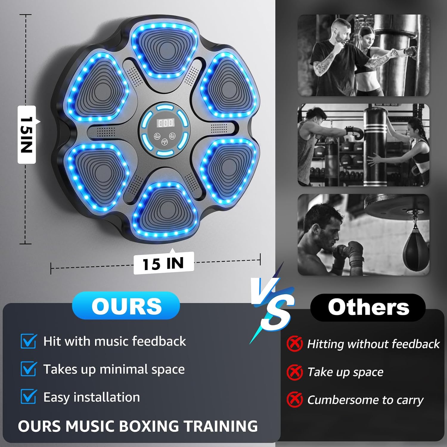 | Included Components | Boxing Machine*1, 1 pairs of boxing Gloves, USB*1, USB Cable. Install accessories |
