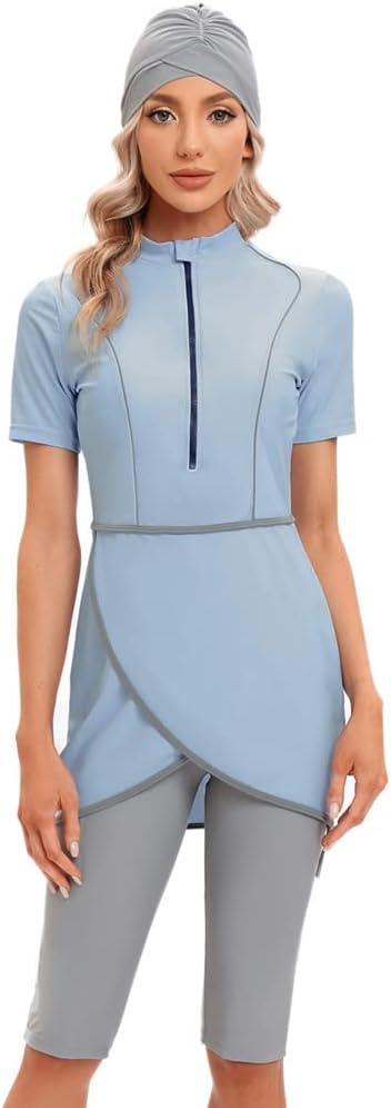 Made from 80% Polymides, 20% Spandex Blocks more than 90% of ultraviolet rays,UPF 40-50+ Size Table 1 inch = 2.54 cm Size S - Ref. US Size 2-4 Bust: 90 cm / 35 inches, Waist: 72 cm Size M - Ref. US Size 4-6 Bust: 94 cm / 37 inches, Waist: 76 cm Size L - Ref. US Size 6-8 Bust: 98 cm / 38 inches, Waist: 80 cm Size XL - Ref. US Size 8-10 Bust: 102 cm / 40 inches, Waist: 84 cm Size 2XL - Ref. US Size 10-12 Bust: 106 cm / 41 inches, Waist: 88 cm Size 3XL - Ref. US Size 12-14 Bust: 110 cm / 43 inches, Waist: 92 cm Size 4XL - Ref. US Size 14-16 Bust: 114 cm / 44 inches, Waist: 96 cm Tips to Buy We use the our Clothing Size Table. Please do not confuse with the Amazon General Size/Europe size/US size etc. Fabrics have a certain flexibility, and there are still 1-3cm measurement errors. If you want to make sure the Modest style, you might consider a bit larger size. But, that is only our advice, you should decide by yourself! In order to avoid the inconvenience of return or exchange, please carefully choose your own size, especially please pay attention to the bust Please fell free to contact with us for any question. All e-mails are answered within 24 hours.
