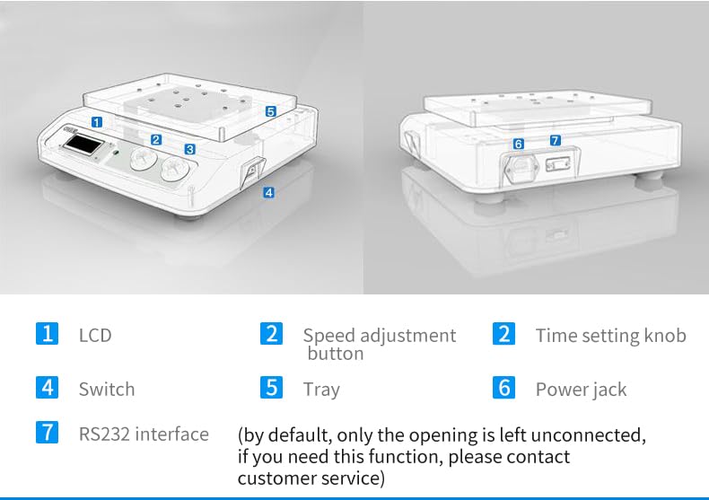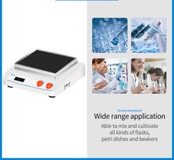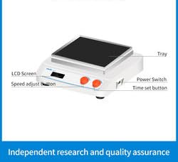 QIUSUO Mutifunctional Bench top Table Shaker Orbital Rocking Device Orbital Testing Equipment with Spring Tray Shaking Mode Orbital Speed Range 60 to 400rpm (optional to 500) Main Features: Large LCD display of timing time, rotation speed and temperature value, easy to understand operation interface; Locking operation mode to prevent misoperation; DC brushless motor drive, low noise, precise speed, long service life, maintenance-free; A variety of trays, rockers, fixtures optional, for a wide range of needs; Easy replacement of accessories, greatly improving work efficiency; Soft start, uniform acceleration, effectively avoiding sample splash; Parameters: Shaking mode:Orbital Temperature Set: / Temperature Resolution: / Heating Power: / Amplitude: 4mm Load capacity:≤7.5kg Motor type: DC Brushless Motor Motor input power: 35W Motor output power: 25W Speed range: 60-400(optional 500)rpm Speed display: LCD Timer display: LCD Time setting range: 99h59min Power supply:100~240V,50/60Hz Gross weight: 8.5kg Allowable ambient temperature/humidity:5~40℃,80% Instrument size (L*W*H): 330*370*130mm Enclosure protection level: IP21