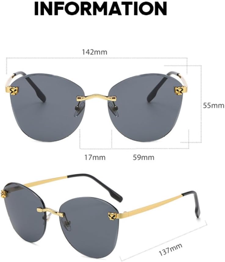 Lens Width:59Lens Height:55Lenses Material:PolycarbonateDepartment Name:AdultGender:MENFrame Material:AlloyLenses Optical Attribute:Gradient,UV400Style:RimlessItem Type:EyewearEyewear Type:SunglassesFeature 1:Vintage SunglassesFeature 2:Square SunglassesFeature 3:Rimless SunglassesFeature 4:Frameless SunglassesFeature 5:Leopard SunglassesFeature 6:Shades for Men【HIGH QUALITY MATERIALS】These sunglasses are made of high quality materials that are light and skin-friendly for durable and reliable wear. The reinforced double screws and strong hinge design prevent the screws from loosening, making the sunglasses more stable and stylish looking.【UV400 PROTECTION RIMLESS RECTANGLE SUNGLASSES】These sunglasses can block harmful UVA, UVB rays, protect your eyes against long term UV damage. High-Definition Lens Gives you a Natural & Clear Vision, and keeping your eyes healthy.【SCRATCH & IMPACT RESISTANT】Our women’s polarized sunglasses with UV protection feature a scratch- and impact-resistant lens coating designed to protect against dings and drops【ADAPT TO ALL OCCASIONS】These sunglasses are ideal for outdoor sports and activities such as parties, photo booths, travel, shopping, driving, and other outdoor activities. It is suitable for any face to show a unique and fashionable lifestyle. It also a great gift idea for your families and friends.【BEST PRODUCT WITH BEST SERVICE】- You don’t have any risk of trying. If you are not completely satisfied for any reason after the purchase, please feel free to contact us. We will provide the best service until our customers are satisfied.