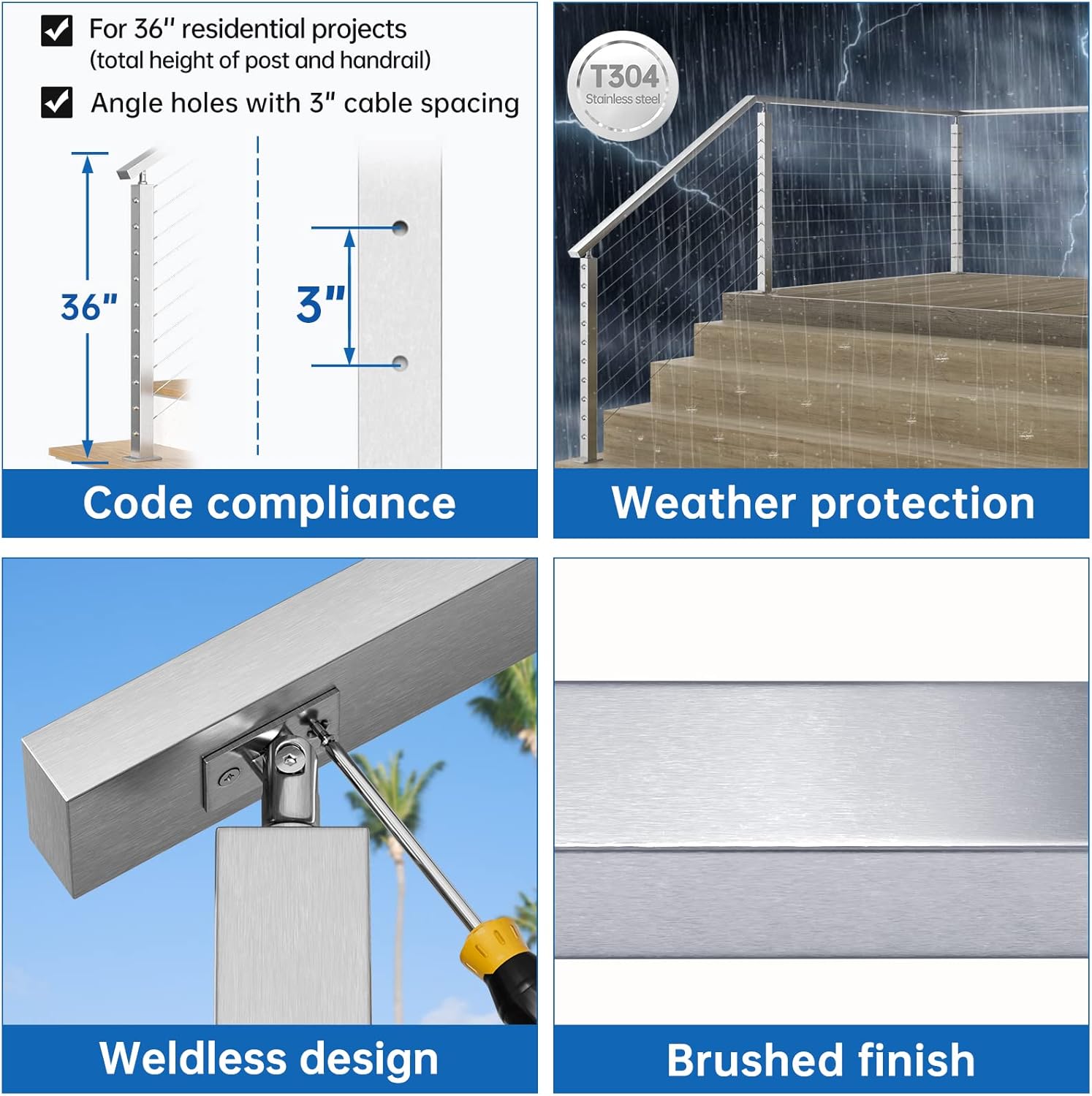 This package includes Muzata 1Pack 36" Brushed Stair Post PS01 LA4S Bundle 1Pack 36" Brushed Corner Post PS02 L34S