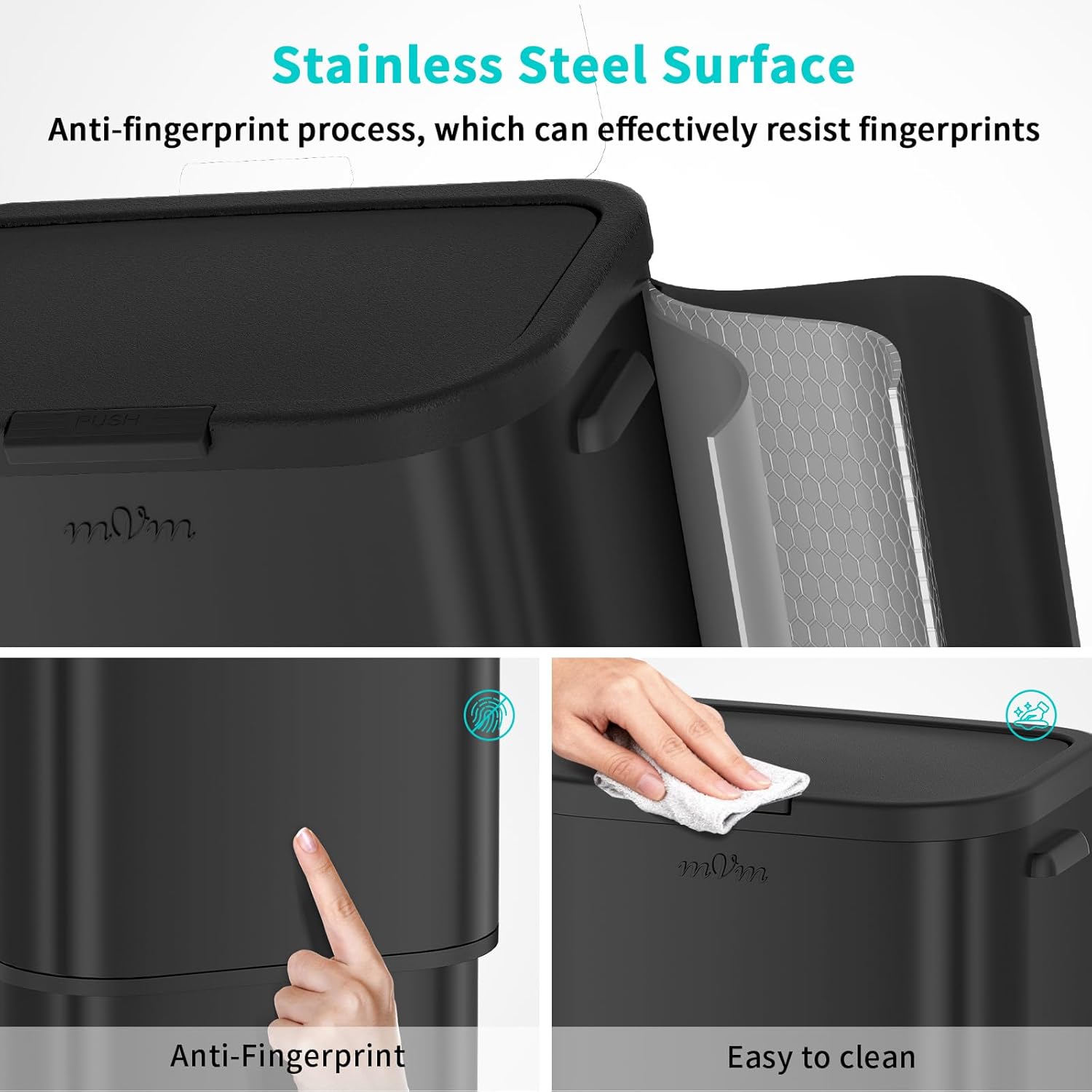 mVm Trash Can for Kitchen, 16 Gal / 60Liter Garbage Can, No Inner Bucket Design Stainless Steel Trash Can with Lid,Anti-Fingerprint,Easy to Clean.For Kitchen,Home Office,Living Room (Matte Black)