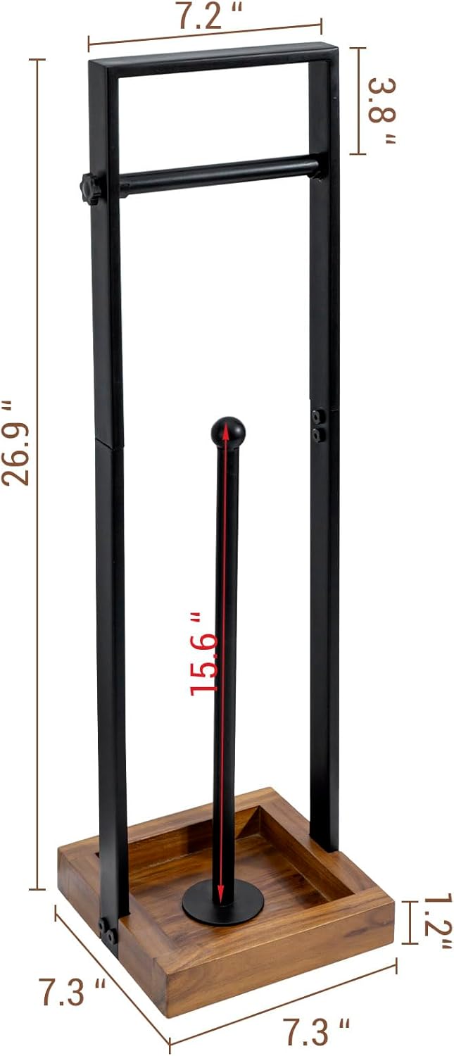 Elevate your bathroom organization with the MyGift Industrial Matte Black Metal and Burnt Wood Freestanding Toilet Paper Holder with Reserve Roll Storage, a functional and stylish accessory that brings modern industrial charm to any bath space. Blending clean lines with rustic accents, this floor-standing holder is designed to suit a variety of interiors—from minimalist urban lofts to cozy farmhouse bathrooms—while keeping your toilet paper both accessible and attractively displayed. Crafted with a durable matte black powder-coated metal frame, this toilet paper stand offers a sleek, contemporary look that pairs effortlessly with the burnt solid wood base, adding warmth and texture to the overall design. The upper arm holds one roll of toilet paper for immediate use, while the vertical post beneath provides convenient storage for three additional rolls, making it ideal for both everyday functionality and guest preparedness. Thanks to its freestanding design, this holder requires no installation—simply place it beside your toilet for instant use. Its compact footprint makes it perfect for bathrooms of all sizes, including powder rooms, half baths, and apartments where wall-mounted options may not be feasible. The weighted wooden base adds stability, preventing tipping even when fully loaded, while the open-access structure ensures quick and easy roll changes. Whether you're redecorating, upgrading, or simply adding practical charm to your bathroom, the MyGift Freestanding Toilet Paper Holder with Reserve Storage offers a reliable, stylish, and clutter-free way to keep essentials at hand—all while enhancing your décor with its industrial-inspired elegance.
