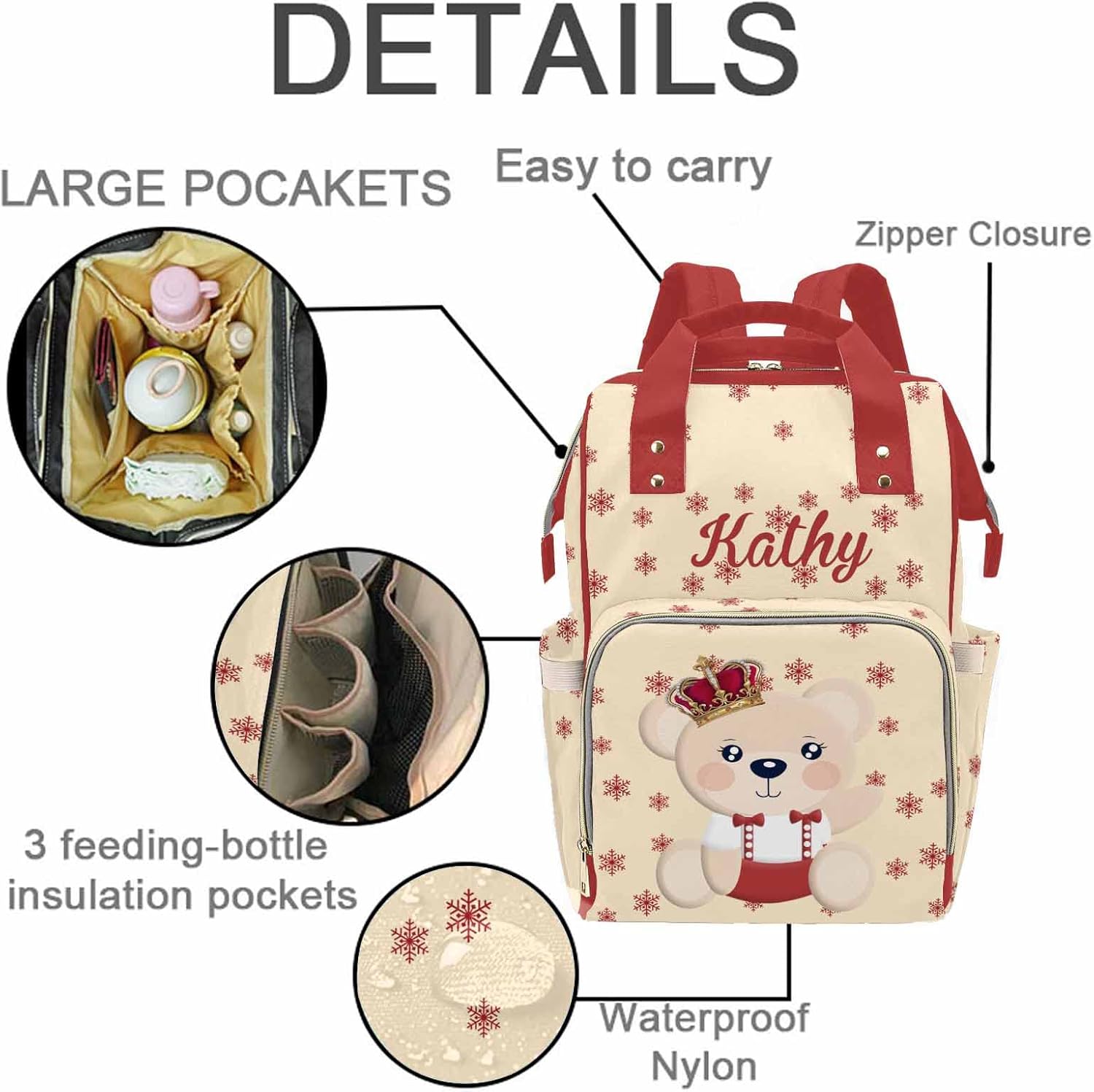 Diaper Bag Backpack Personalized with Name for Girl Boy Mom & Dad, you can personalize the name what you need anytime. Nylon Material: Oxford and nylon fabric, makes the mom dad diaper bag durable. Baby bag with smooth zipper, sturdy inner lining, delicate reinforced stitches.Large Capacity: Custom Name diaper backpack with a main compartment and some different separate pockets inside, which can store different things, daily necessities. Item size: 10.8"(L) x 6.9"(W) x 15.75"(H).Multi-function Design: Front compartment includes 3 insulated pockets and one mesh compartment, the milk bottles can be placed in the insulated pockets. The other big compartment inside designed by absolute 4 pockets and one zipper pocket, so that you could put different things and keep them organized. Diaper bag also with 2 side pockets.Adjustable Straps: Make you more comfortable and stable while you carrying the personalized name diaper bag backpack.Waterproof: The Water resistant outer material of personalized diaper bag to protect your daily goods and the inner lining can be wipeable.