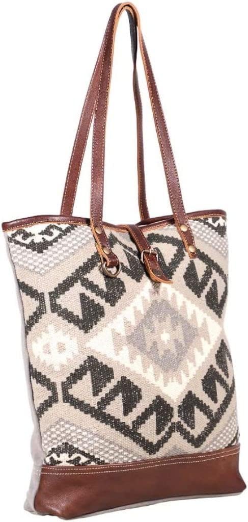 This stylish Myra bag combines functional design with chic high fashion for everyday use. Myra Bags are made from upcycled materials like canvas tarps and tents, using recycled materials to avoid waste. The Myra Bag collection is about creating great fashion that's earth friendly. We add special detailing like leather handles, trim, and printed graphics to give Myra Bags a one-of-a-kind style.