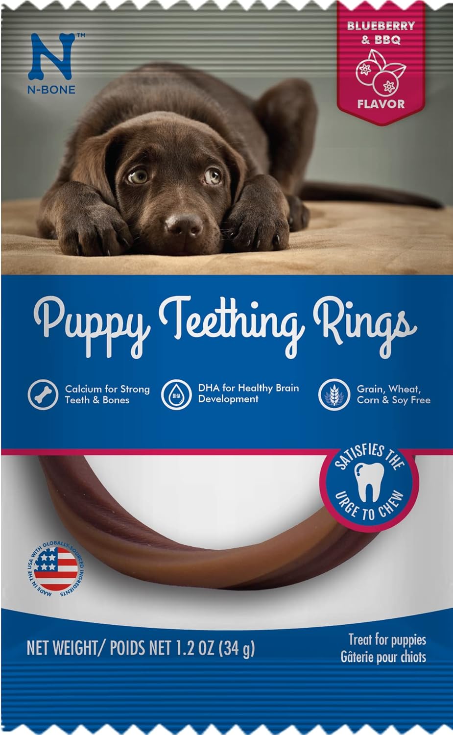 Satisfy your furry young friend’s natural need to gnaw and soothe his sore gums with N-Bone Puppy Teething Rings Dog Treats. With a round shape that’s designed specifically for the chewing needs of puppies, added ingredients to support your puppy's health, you’ll both love these teething chews. And thanks to the pliable and digestible formula of N-Bone Puppy Teething Rings, you don’t have to worry about your young pooch damaging his immature teeth or eating something that he’s not supposed, unlike traditional puppy chew bones that are made from rubber or plastic.