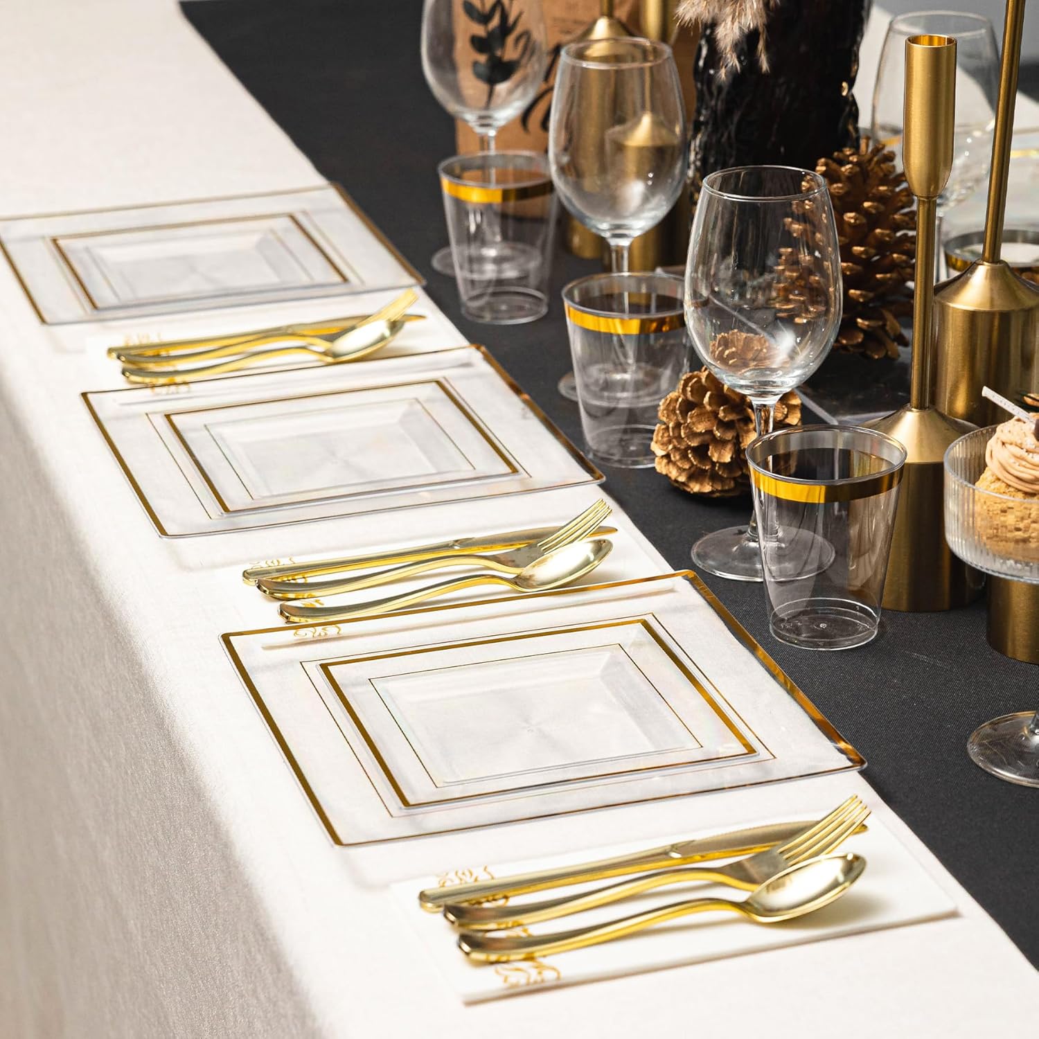| Included Components | 100 Clear Square Plastic Plates, 50 Cups and 50 Napkins, 50 Knives, 50 Spoons, 50 forks |