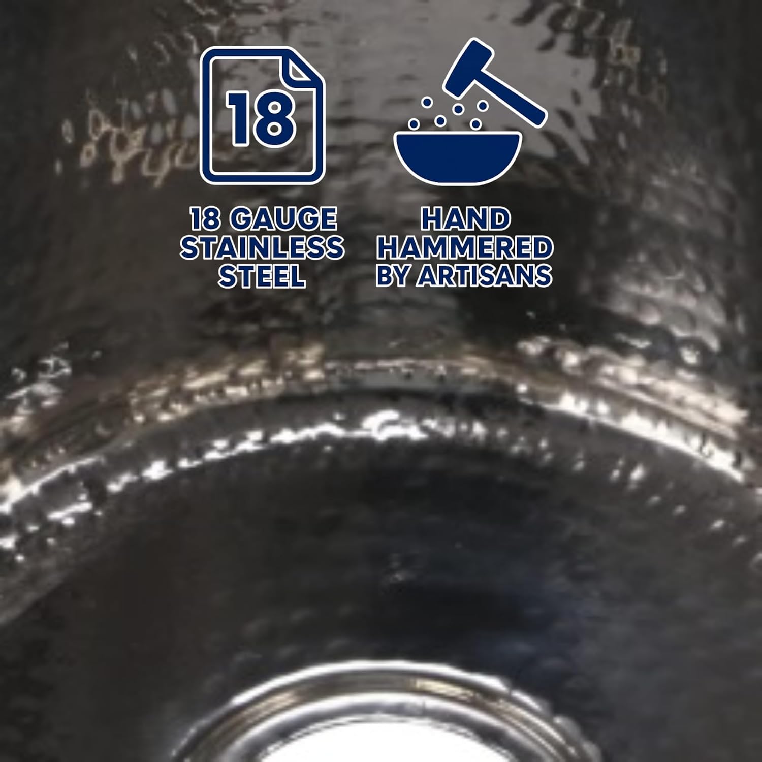 This round hand-hammered stainless steel bar sink can be topmounted or undermounted. Entertain in style as you make a statement with this show-stopping sink! 18 gauge stainless steel will endure while adding sparkle to bar area. Size may vary slightly due to the hand made nature of this sink. Slight variations may exist. Durable Make a focal point of a room with this unique sink. This sink features an overflow. Easy occasional polishing will keep it lustrous for a lifetime. "