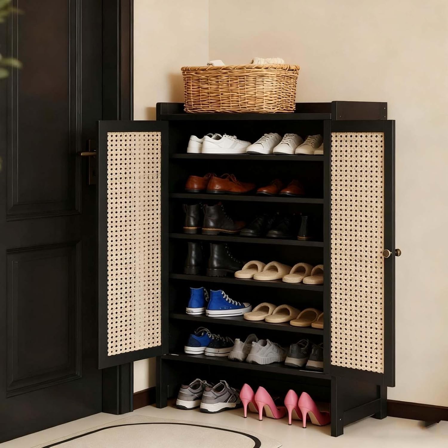 Introducing our versatile bamboo shoe cabinet, expertly designed to optimize space while maintaining a stylish look. With a narrow design, this cabinet accommodates 14 to 21 pairs of shoes, making it an ideal solution for small entryways, apartments, or dorm rooms. Its expandable feature allows you to choose between 7 or 8 tiers, so you can customize it to fit your specific needs. Equipped with dustproof doors that seal tightly, this shoe cabinet keeps your footwear protected from dust and dirt. The easy-to-clean surface means a quick wipe with a damp cloth is all it takes to maintain its pristine condition. Say goodbye to clutter and disorganization; this cabinet also provides ample storage for hats, scarves, and other accessories, ensuring everything you need is within reach. Assembly is a breeze with our tool-free design, allowing you to set it up in just 30 minutes—no drills or extra tools required. The sturdy recessed panels ensure stability, so you never have to worry about wobbling, even when it's fully loaded. Whether you’re a busy family looking to maximize storage or a renter in need of a functional yet stylish solution, this bamboo shoe cabinet is the perfect addition to your home. Transform your space and keep your shoes organized with this practical and elegant furniture piece. #narrow shoe cabinet #shoe cabinet with doors