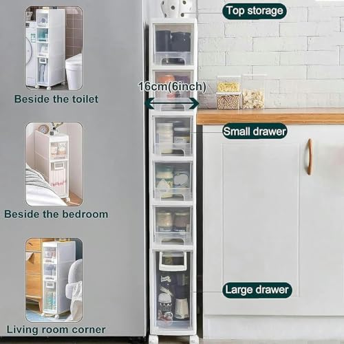 There are 2 different widths of narrow storage cabinets to choose from,and there is always one that meets your needs,perfectly fits the gaps,and is easy to put into use.As a small bathroom furniture,it has a modern design and beautiful appearance.The white finish adapts to various decorative styles and leaves a good impression on people ♦Characteristic 1.Thickened outer shell for strong overall load-bearing 2.Semi transparent plastic drawer for easy identification of items 3.Narrow bathroom cabinet with 360° pulley and brake locking function design 4.Multi layer drawer design,classified storage not messy 5.The simple design of the white finish makes it easy to integrate into most home styles ♦Specifications Name:Multi functional narrow storage drawer cart Type:Tissue style (side hollowed out), drawer style Drawers:2 drawers, 3 drawers, 4 drawers Material:PP Color:White Product weight:3kg,4kg,5kg Load capacity of each drawer layer:5-10kg ♦Overall size of 19.5cm (8inch) wide and narrow cabinet 19.5x38.5x60.5cm(8x15x24inch),19.5x38.5x79cm(8x15x31inch),19.5x38.5x97cm(8x15x38inch) ♦Overall size of 16cm (6inch) wide and narrow cabinet 16x36x51cm(6x14x20inch),16x36x66.5cm(6x14x26inch),16x36x81cm(6x14x32inch) ♦Package includes 1x Bathroom floor cabinet white ♦Note Before purchg,please carefully read the product size to ensure it is suitable for your needs