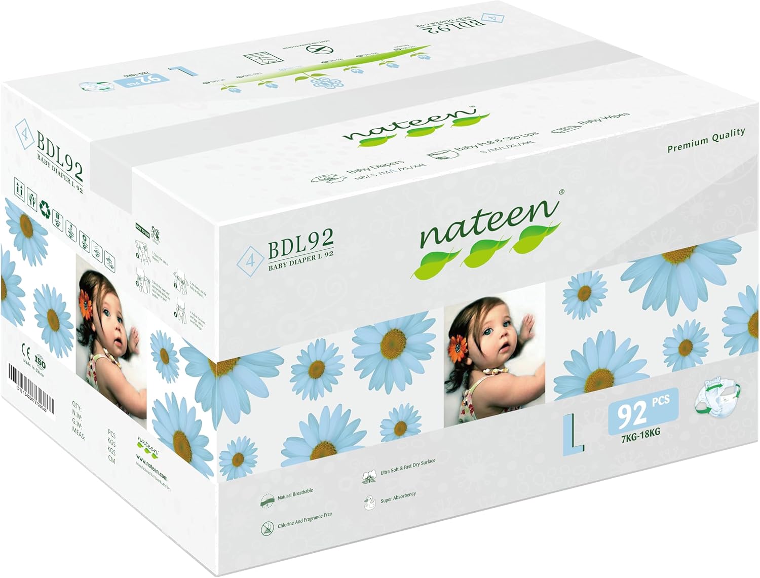 Introducing our latest innovation: eco-friendly baby diapers and pull-ups. Crafted for utmost comfort, leak protection, and environmental sustainability, these products boast hypoallergenic materials, free of harmful chemicals, and are made from natural fibers to prevent rashes and allergies. With impressive absorbency and durability, they offer all-day protection while being up to 80% biodegradable, minimizing environmental impact. Featuring a high-quality build and eco-friendliness, they prioritize your baby's well-being and a greener future. Our diapers feature: - Absorbent Core: 100% long fiber fluff pad, chlorine-free cellulose. - Super Absorbent: Sodium polyacrylate for high absorbency and odor control. - Acquisition Layer: 100% soft touch propylene to keep skin dry. - Leak Guard: Special raised design for long-term leak prevention. - Back Sheet: Triple textile back sheet for breathability and impermeability. - Wetness Indicator: Triple indicator for better security. - Other Features: Non-toxic glue, latex-free elastics, and a flexible waistband for comfort and freedom of movement.