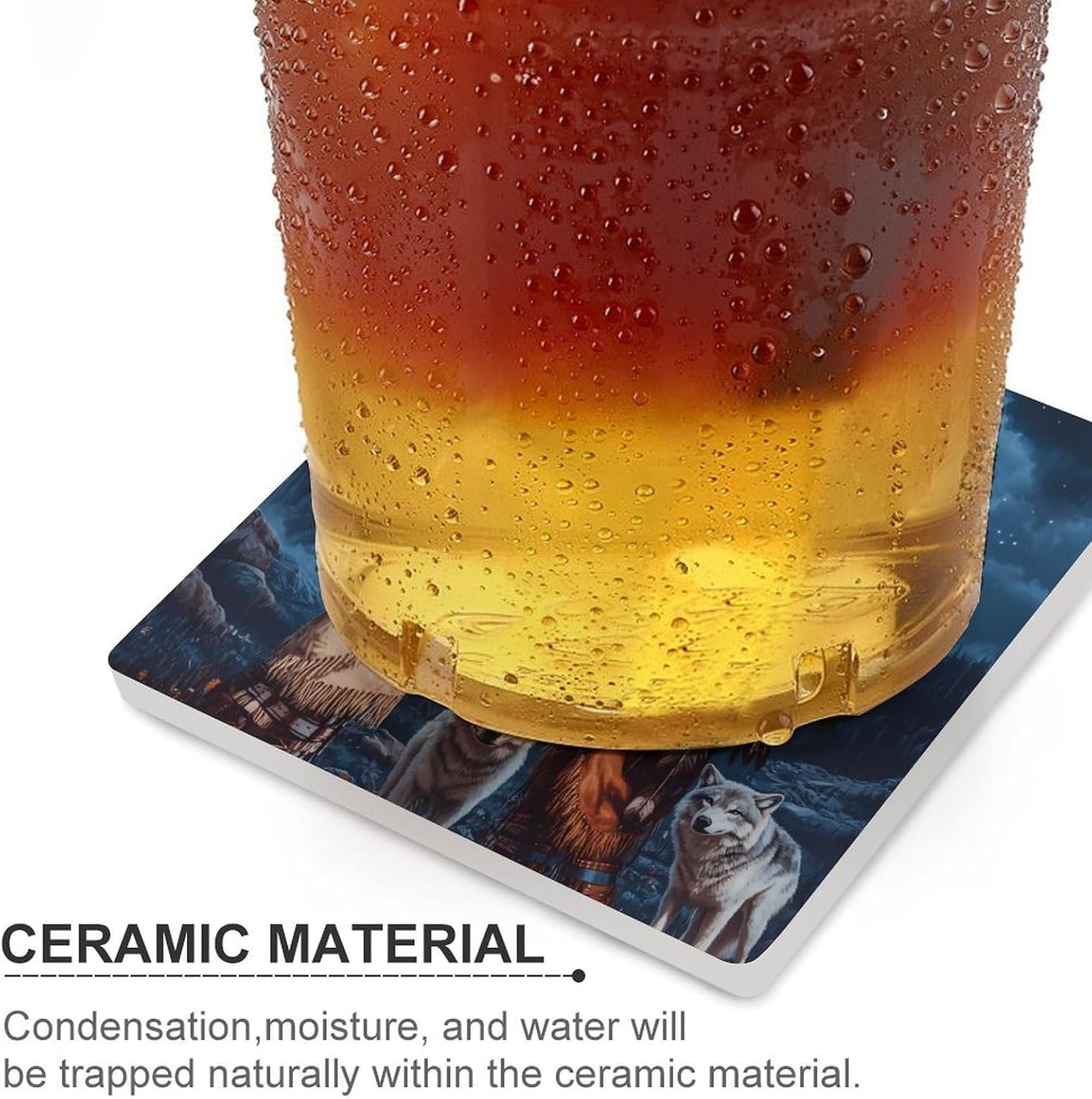 coasters,coasters set of 4,coasters set of 6,cute coasters with Funny Pattern Printed Ceramic Coasters with Cork Base Cup Holder Absorbent for Drinks Coasters Square Tabletop Protection Mat Decorative Cute Coffee Cup Beverage Coasters