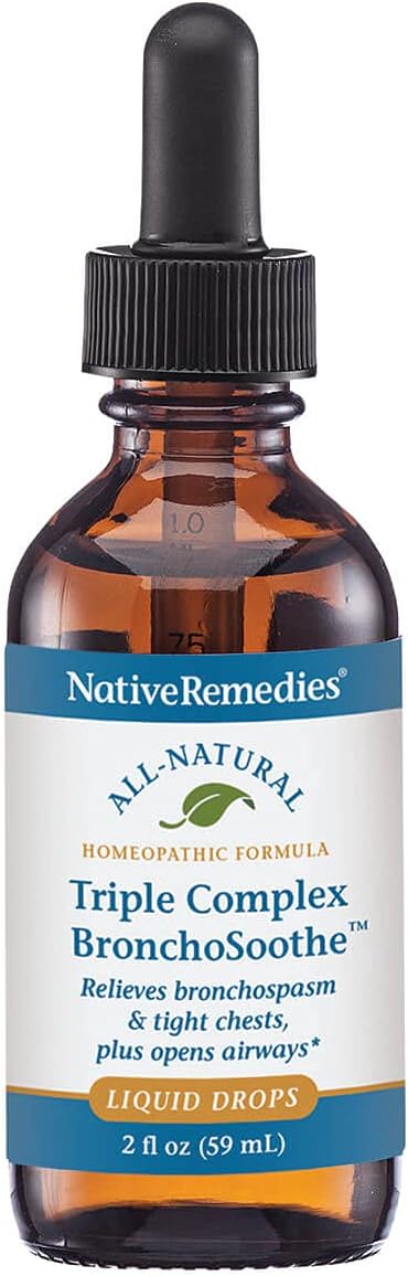 Triple Complex BronchoSoothe 2-Pack is a safe, non-addictive, natural remedy containing 100% homeopathic ingredients especially selected to temporarily relieve tightening of the chest to open airways and temporarily improve respiratory health. Triple Complex BronchoSoothe is a combination of three biochemic cellular-supporting tissue salts and may be taken at the first signs of wheezing, chest constriction, closed airways or abnormal breathing for effective help. Triple Complex BronchoSoothe is taken internally to temporarily support lung and bronchiole functioning, and maintain respiratory tract and immune system health. Available in convenient liquid form, Triple Complex BronchoSoothe is easy to ingest and hassle-free with no artificial colors or preservatives. Due to its unique homeopathic formula, Triple Complex BronchoSoothe is safe for all ages.