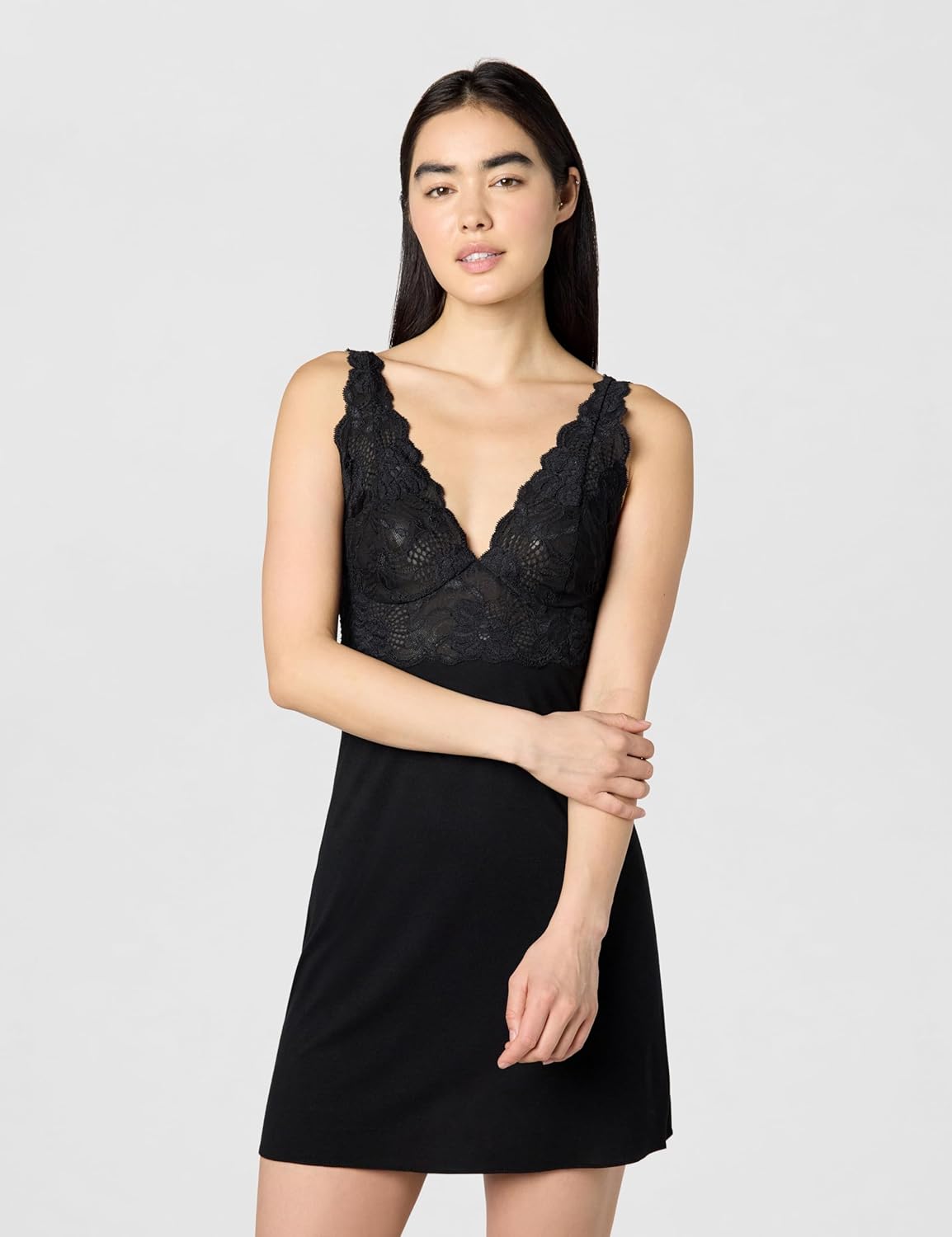 Solid poly modal blend jersey chemise with lace cups