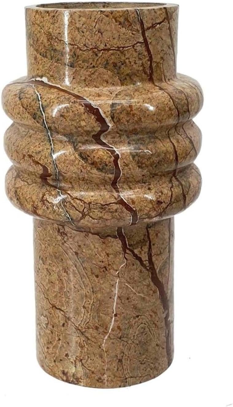 Showcasing the allure of earthy designs this decorative accent vase boasts a cylindrical silhouette that is embellished with three elegant ridges. Finished in a natural veined brown this piece will capture the eye of your guests either on its own as part of an organic modern ensemble or as a vessel for a colorful floral collection.
