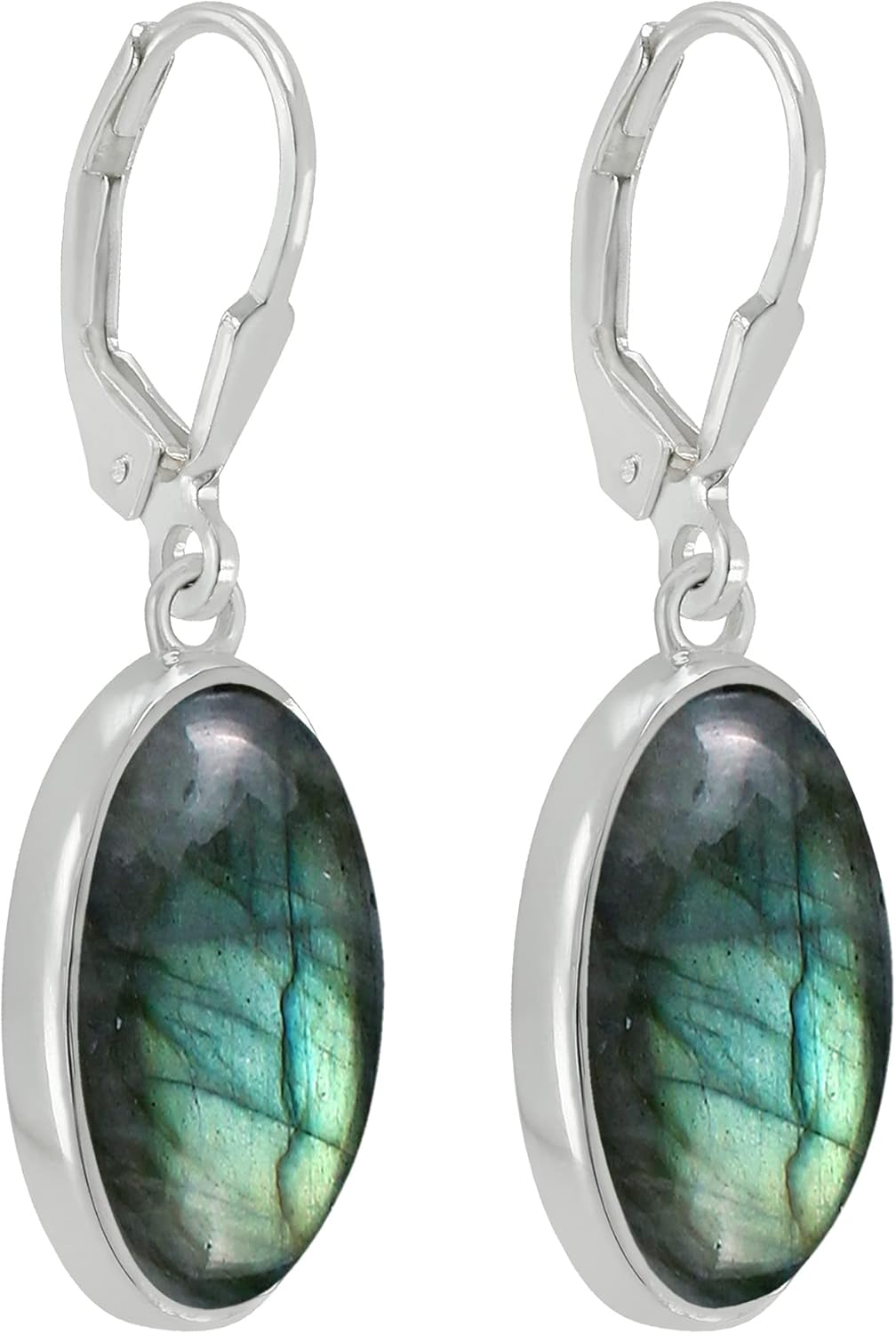 Natural Moonstone/Labradorite/Crystal/Amethyst Oval Gemstone Dangle Earrings - 925 Sterling Silver Plated Birthstone Earrings for Women - Handmade Leverback Jewelry Gifts for Her