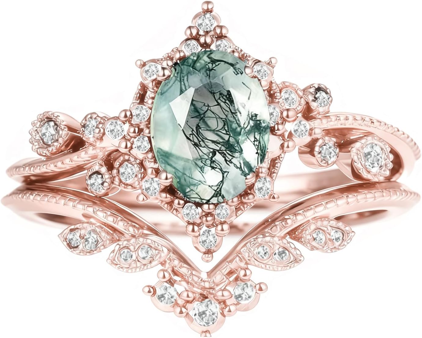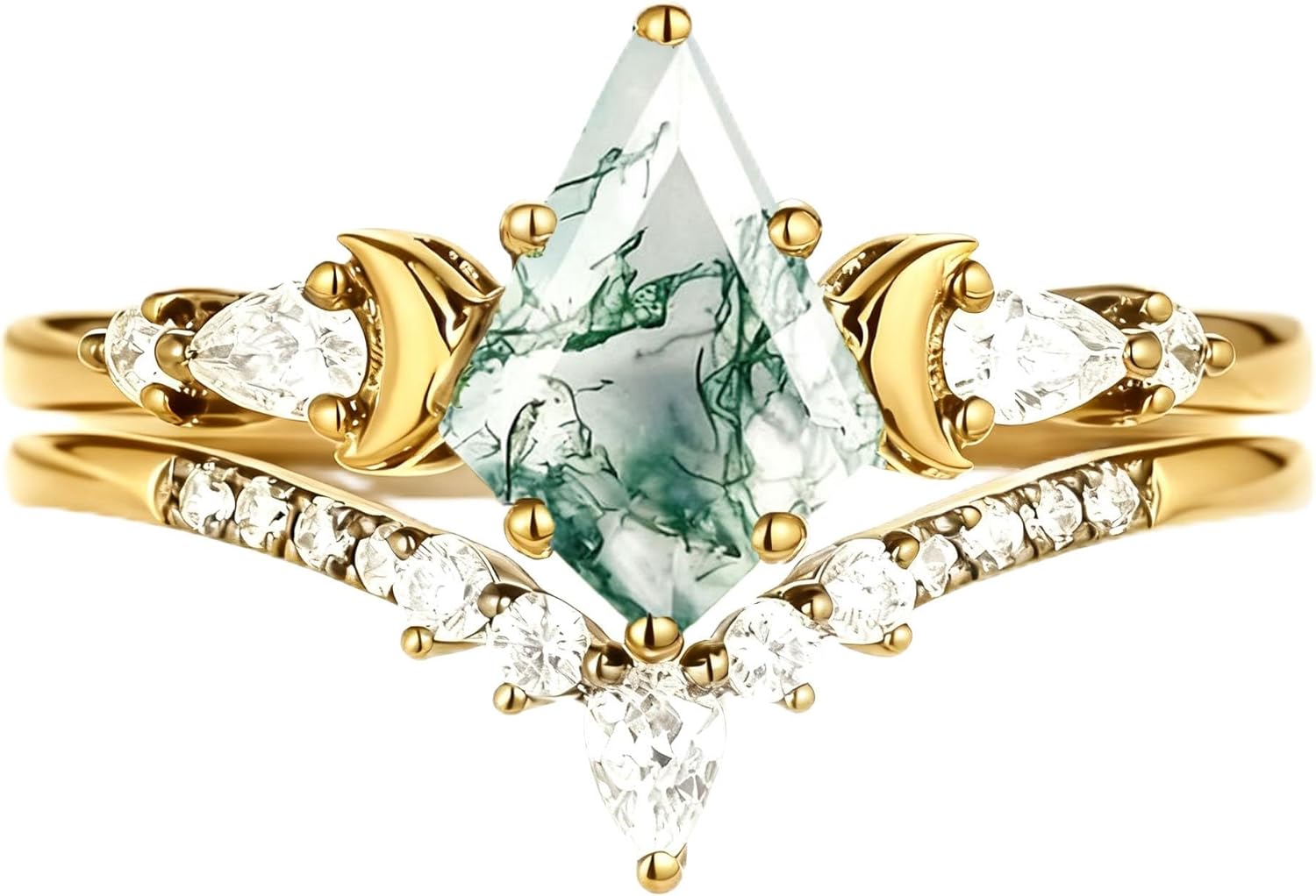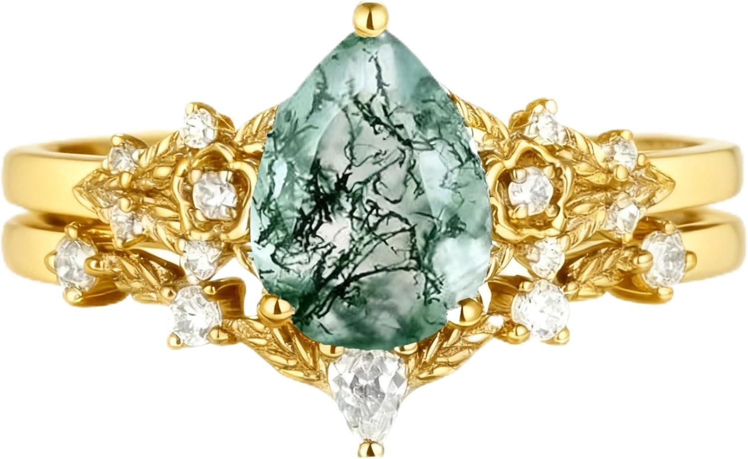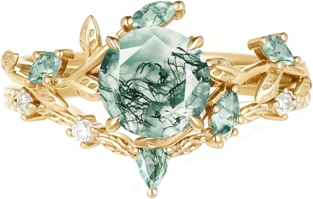 Metal type: 925 Sterling silverTotal Weight (CT. T.W.):1.5ctClarity:VVS1Stone Type:Natural Moss Agate & MoissaniteStone Color:Green & WhiteMetal Color:Black/White/Yellow/Rose Gold;Metal Finish:PolishedMetal Type:Platinum Plated Silver