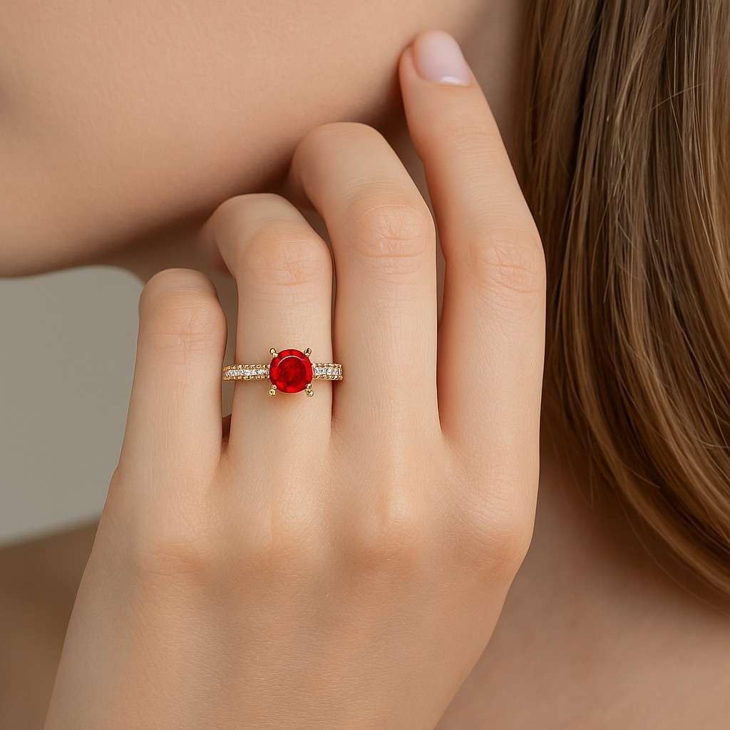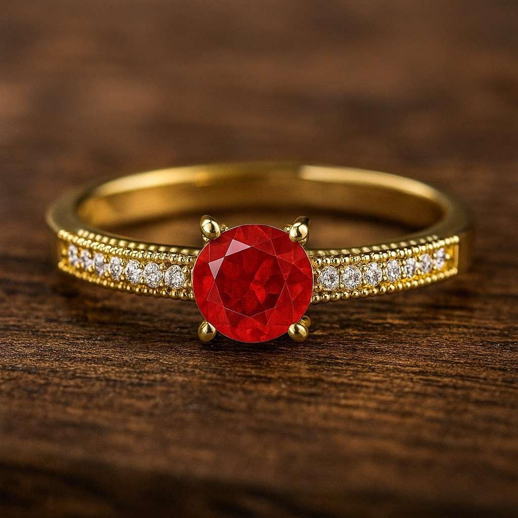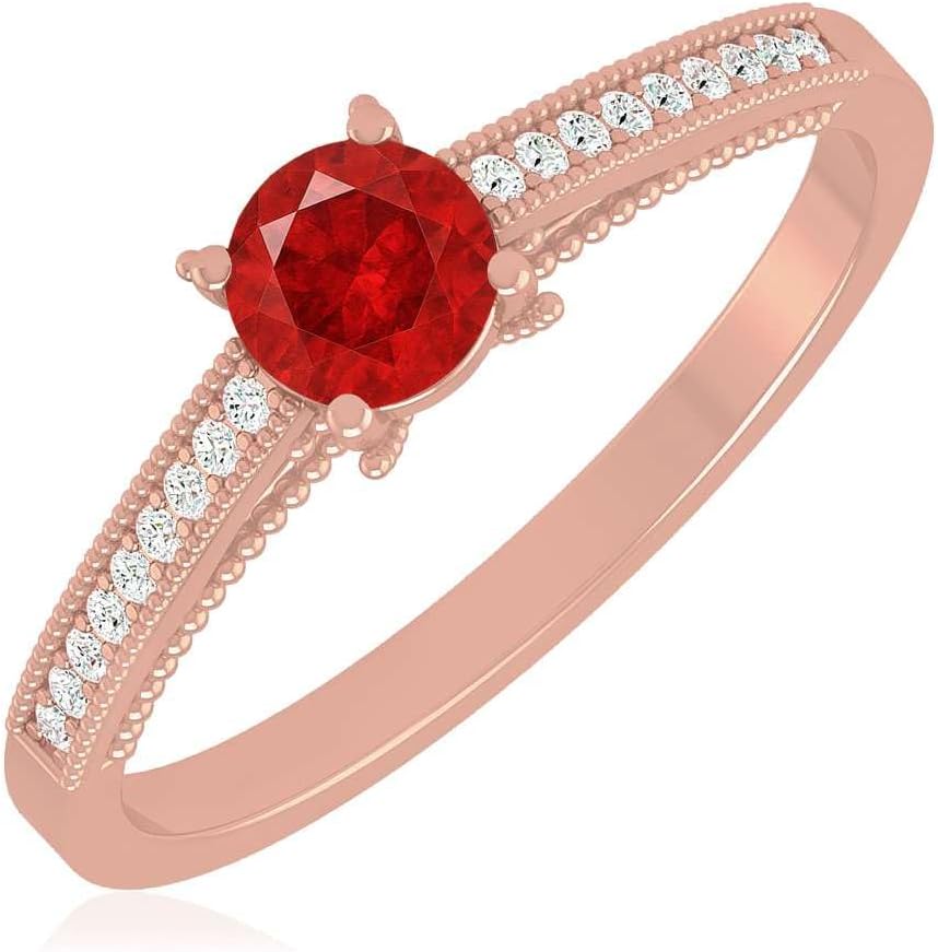 Elevate your jewelry collection with this elegant Natural Ruby Round Solitaire Ring, designed to showcase the rich and vibrant beauty of July’s birthstone. The brilliant round-cut Ruby is securely set in a classic four-prong setting, supported by a refined vintage-style beaded band adorned with shimmering lab-grown diamonds. Crafted with precision in your choice of 14K Yellow Gold, 14K Rose Gold, 14K White Gold, or 92.5 Sterling Silver, this ring blends modern ethics with heirloom-inspired charm. The delicate milgrain accents and diamond-studded shoulders create a timeless, romantic look perfect for everyday wear or special celebrations. Ideal as a promise ring, engagement ring, anniversary piece, or thoughtful July birthstone gift, this Ruby ring combines craftsmanship, elegance, and long-lasting shine.