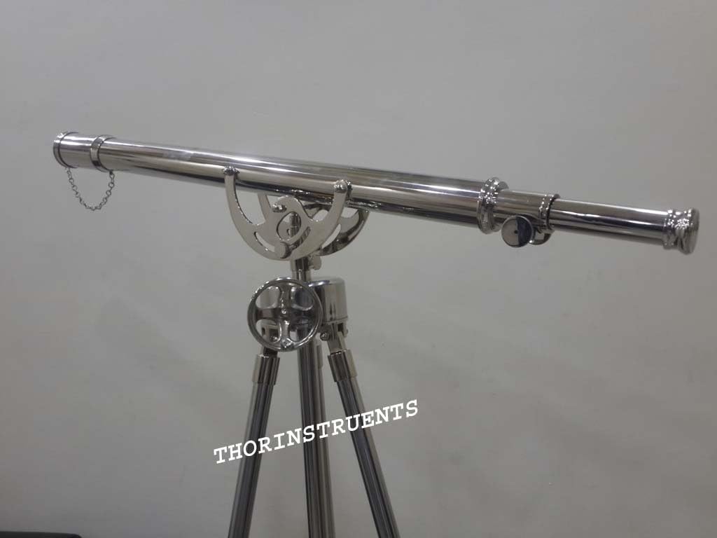 A Unique Brass single barrel telescope with adjustable Steel pipe wheel stand and classy chrome finish Interior decorative Item.Beautiful telescope replica is hand made carefully working item,