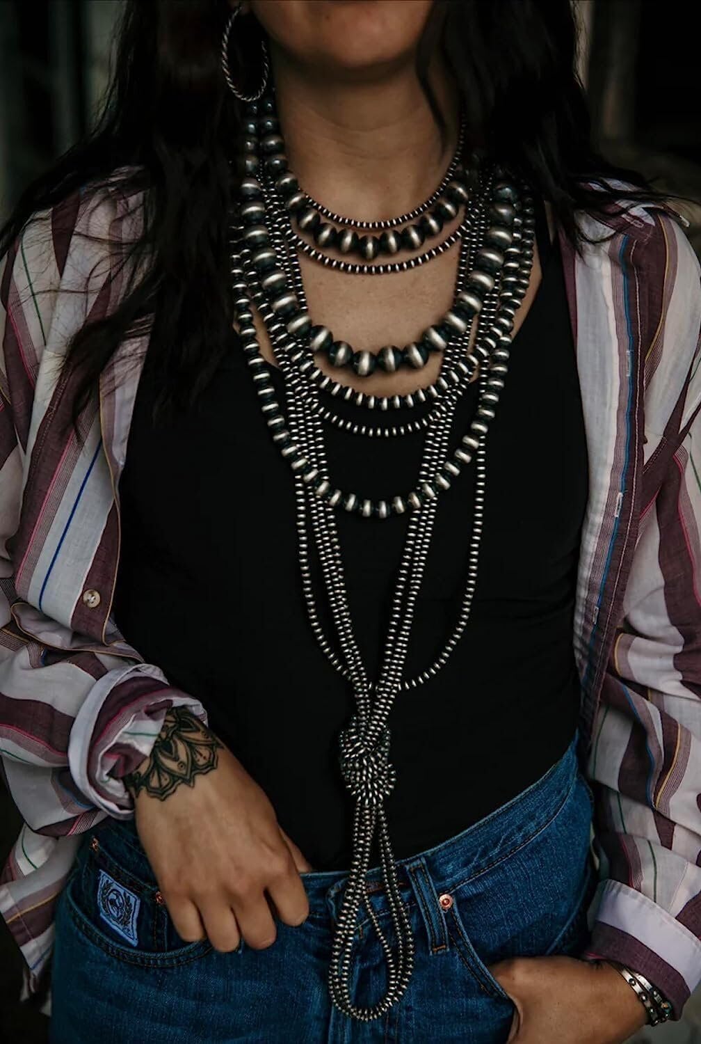 Celebrate the elegance of this Navajo strung 925 sterling silver necklace, highlighting the delicate allure of round Navajo Pearls. Skillfully handcrafted by a talented Navajo artisan in New Mexico, this necklace proudly displays the stamped 925 mark, ensuring its authenticity and quality. You have the choice of several different lengths: 14 inchesup to 36 inches, allowing you to select the perfect fit for your style and preference. Embrace the rich heritage and impeccable craftsmanship of the Navajo people with this exquisite handmade necklace. Each saucer Navajo Pearl embodies the artistry and cultural significance passed down through generations. Let this timeless accessory enhance your style and become a cherished symbol of Navajo craftsmanship. These are made to order and take 2-6 weeks for us to make and ship to you.