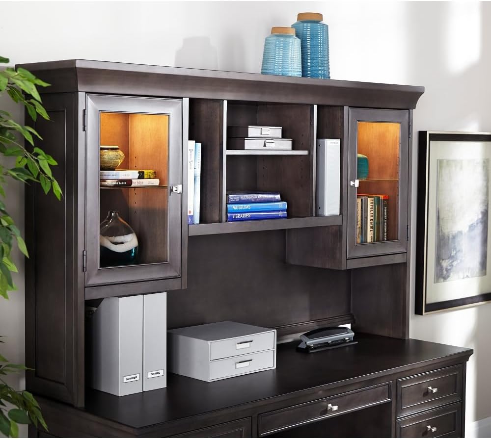 Transform your office with the NBF Office Glass Doors Hutch Storage Shelving Bookcase, featuring a sleek gray finish that complements any décor from modern to transitional. This contemporary storage cabinet is designed for optimal organization and style, boasting spacious shelving behind elegant glass doors that showcase books, awards, and decorative objects while protecting them from dust. Integrated lighting highlights your collections and adds sophistication to any interior space. Built from durable finished wood and quality glass in a functional rectangular shape (69" W x 42" H x 13" D), this hutch offers ample room without sacrificing floor space—perfect for professional offices or home workspaces seeking polished functionality with long-lasting appeal. Elevate your workspace today with versatile storage you’ll love every day!