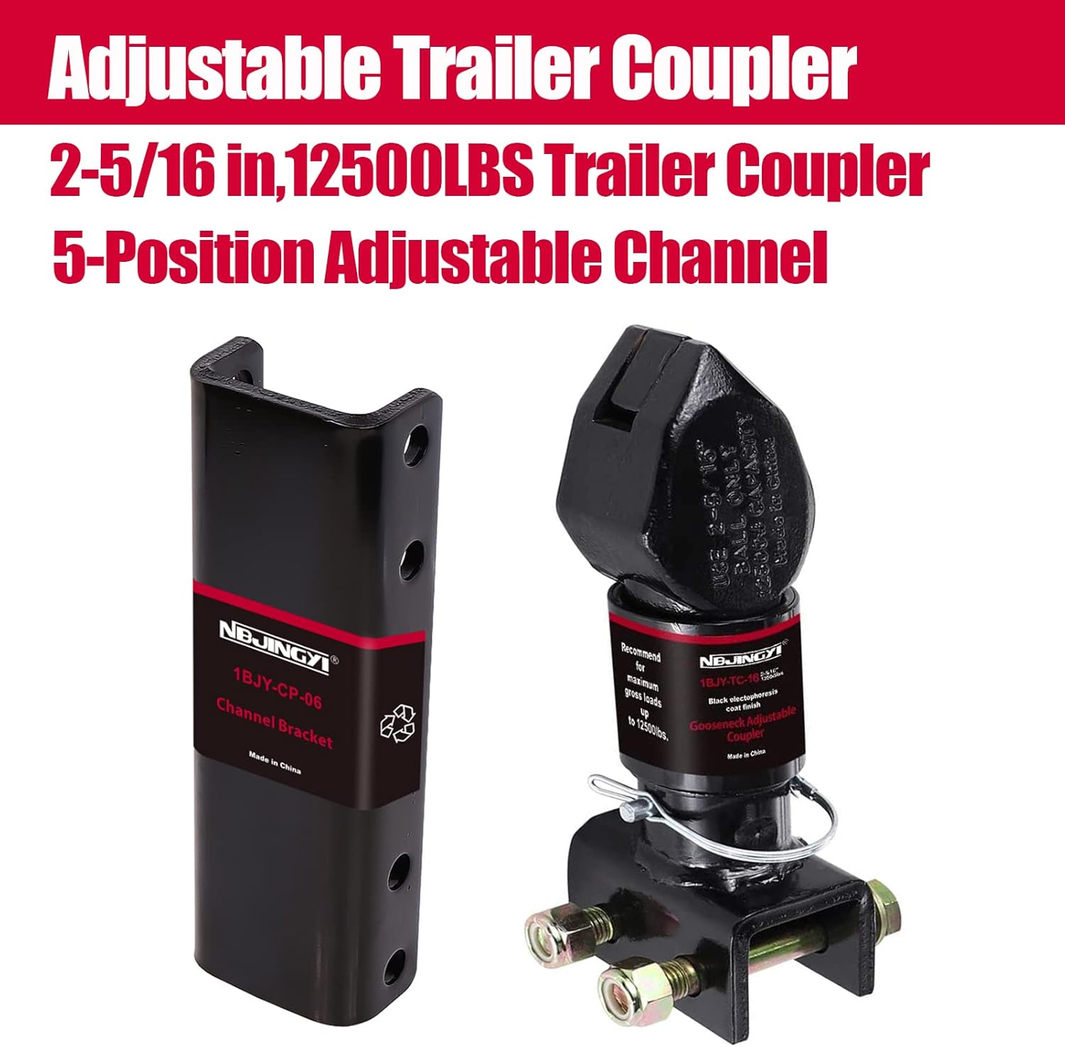 NBJINGYI Adjustable Trailer Coupler 2-5/16 in,12500LBS Capacity with 6-Position Adjustable Channel