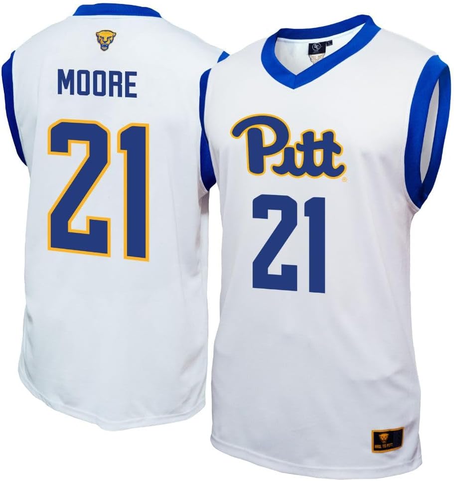 Vason Stevenson #21 Pittsburgh Panthers White NIL jersey with custom jock tag and embroidered logo on the back neck.