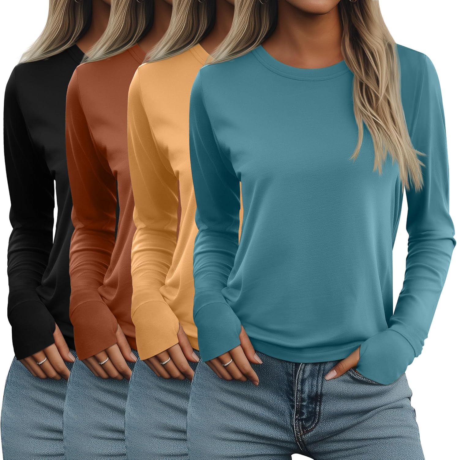 | Style Name | Crew Neck Loose Fit Long Sleeve Thumb Hole Tunic |