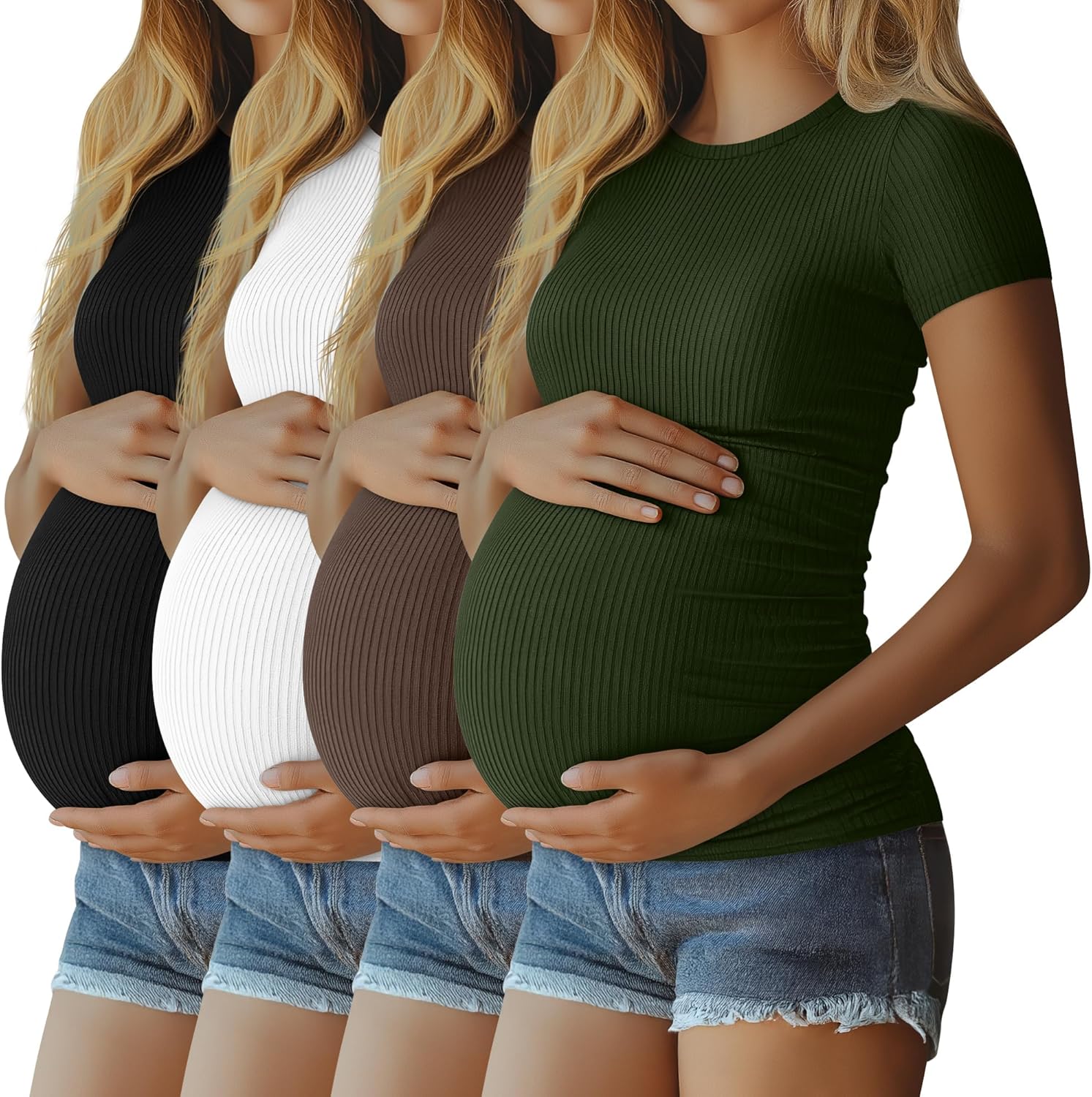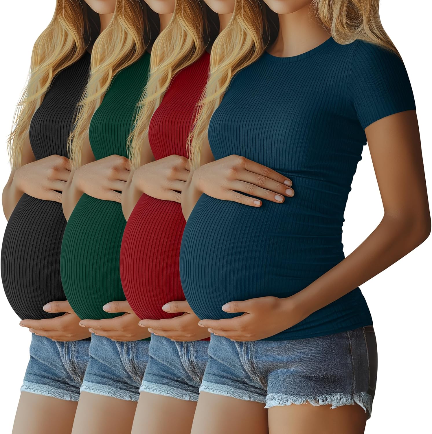 Features: The ribbed knit fabric provide freedom and stretchy, and maternity T shirts are several sizes to choose from, Please refer to the size chart before purchasing. If you prefer a loose fit, please order one size up than you normally wear. By simply handwashing in cold water or gently machine washing, you can maintain the color and shape of our cotton maternity tops effortlessly. Avoid washing with dark colored clothes to prevent color transfer. Specifications: Material: 92% Cotton, 8% Spandex Package includes: 4 x Women's maternity T shirts Notes: Manual measurement, please allow slight errors on size. The color may exist a slight difference due to different screen displays