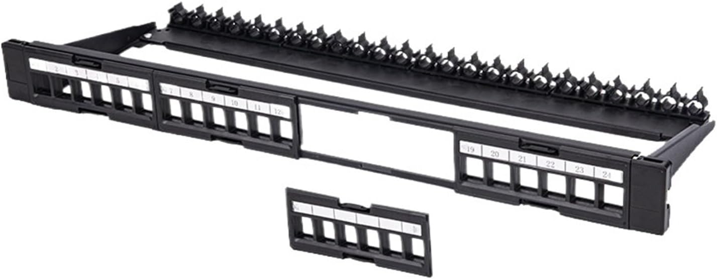Wall Plates & ConnectorsNetwork patch panel blank 1U 24 ports detachable for standard RJ45 with cable organizer and label bar