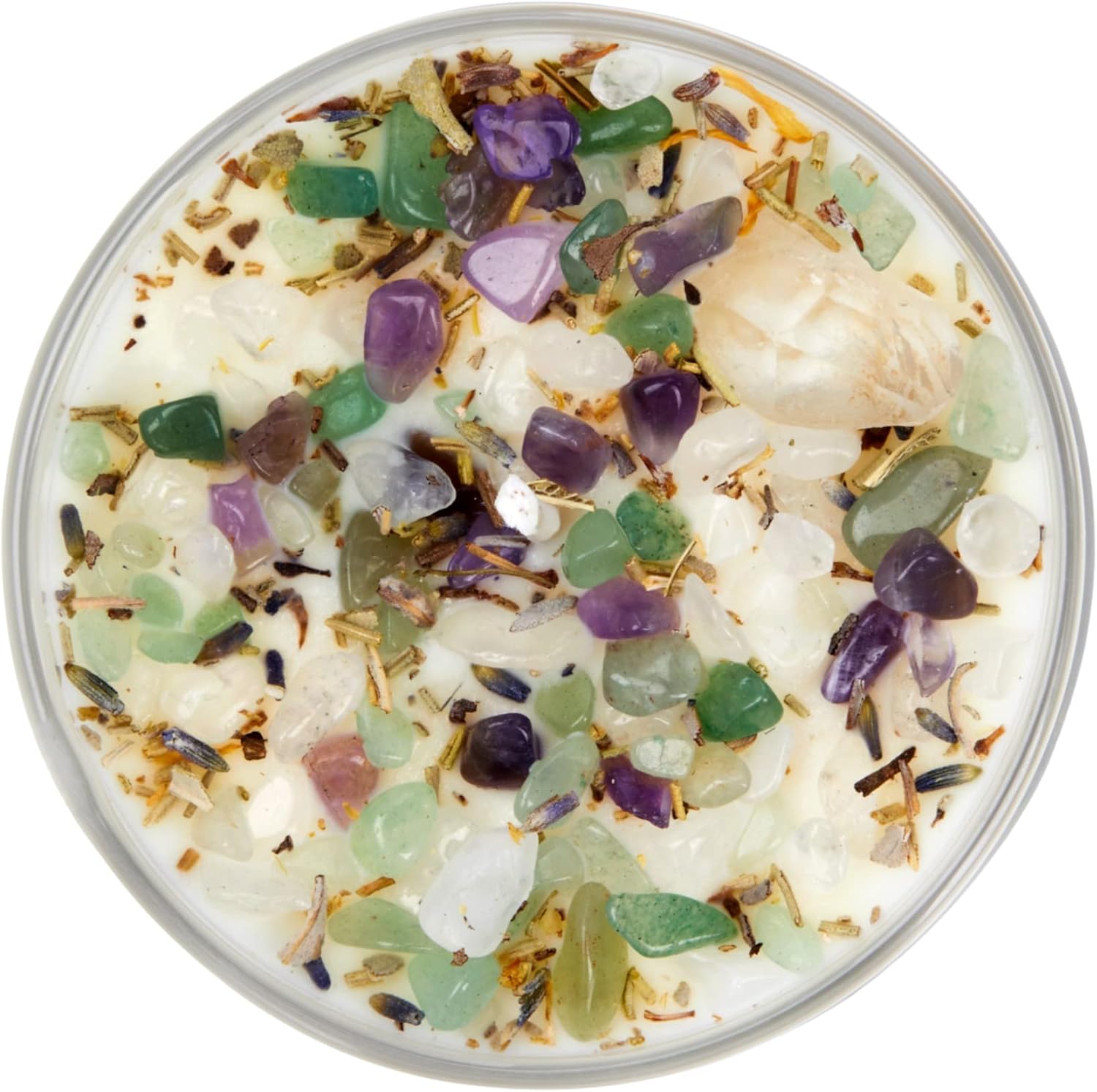 Our Healing Energy Candle is made to ease grief and bring comfort while promoting calming and soothing energy. It helps to support those seeking aid in healing energy. The Healing Energy Candle has a Floral, Woody, and Sweet scent with Amethyst, Green Aventurine, and Clear Quartz healing crystals on top. Handmade and Hand-poured with Soy Wax for a Long, Clean Burn!This listing is for a single (1) New Moon Beginnings Candle container or pack of tealights. New Moon Beginnings Candles are Handmade and Hand-poured in the USA. We use 100% Natural Soy Wax, Essential oils, Natural Fragrance Oils, and 100% Cotton Wicks (Lead-Free). Each candle is topped with Genuine Crystals and Stones, flowers, and herbs which are all mindfully selected to help set the intention of the candle.Size Options include: Tealights in a set of 6: Each Tealight is .75" tall and 1.5" in diameter7.5 oz. Glass Jar: 3 inches high and ~2.75 inches in diameter8 oz. Tin with lid: 2 inches high and ~3 inches in diameter12 oz. Glass Jar with lid: 3.5 inches high and ~3.25 inches in diameter21 oz. Glass Jar with lid: 6.25 inches high and ~3 inches in diameterBURN TIMES: Tealights: 4 to 6 hours per tealight7.5 oz: 20 to 30 hours8 oz: 20 to 30 hours12 oz: 40 to 60 hours21 oz: 80 to 100 hours