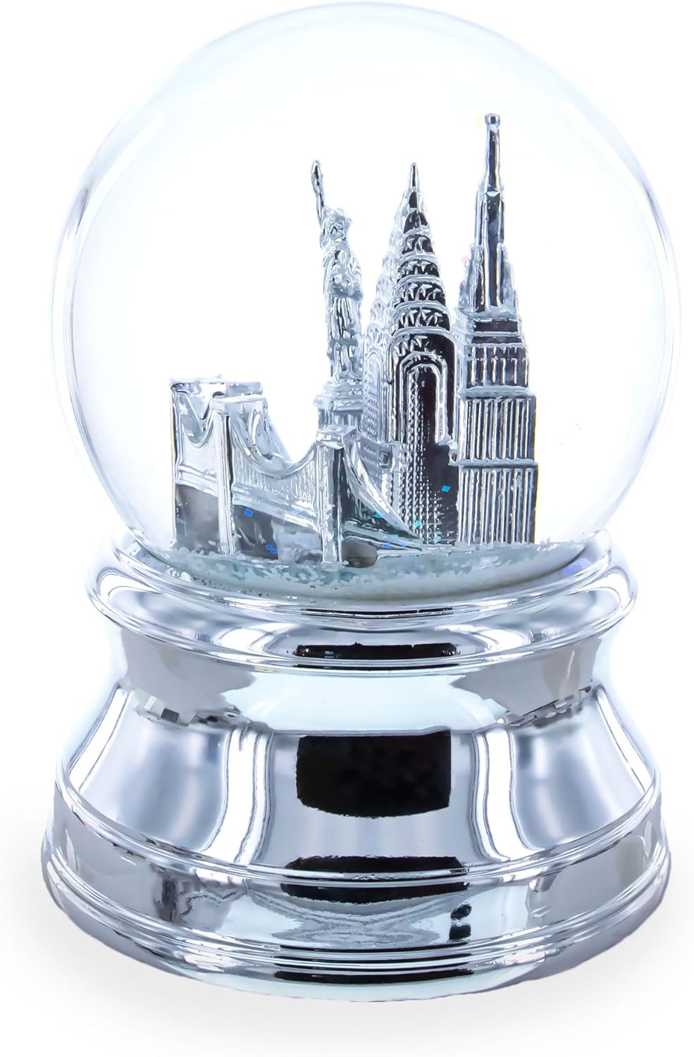-5.8 Inches Tall x 3.9 Inches Base Diameter -Hand Painted -Windup Mechanism -Snow and Glitter Flakes in the Water -Resin Base -Glass Globe -Gift Boxed Celebrate the holiday season with this stunning Boston cityscape snow globe, featuring iconic buildings from the city's skyline. The intricate details inside the globe bring the essence of Boston to life, making it a perfect keepsake for residents, tourists, or collectors. The silver base is elegantly engraved with "Merry Christmas Boston," adding a festive and personal touch to this classic snow globe. When shaken, the scene is enveloped in a swirl of snow, capturing the magic of winter in the city. This decorative piece makes an excellent gift or souvenir to remember Boston during the holidays.