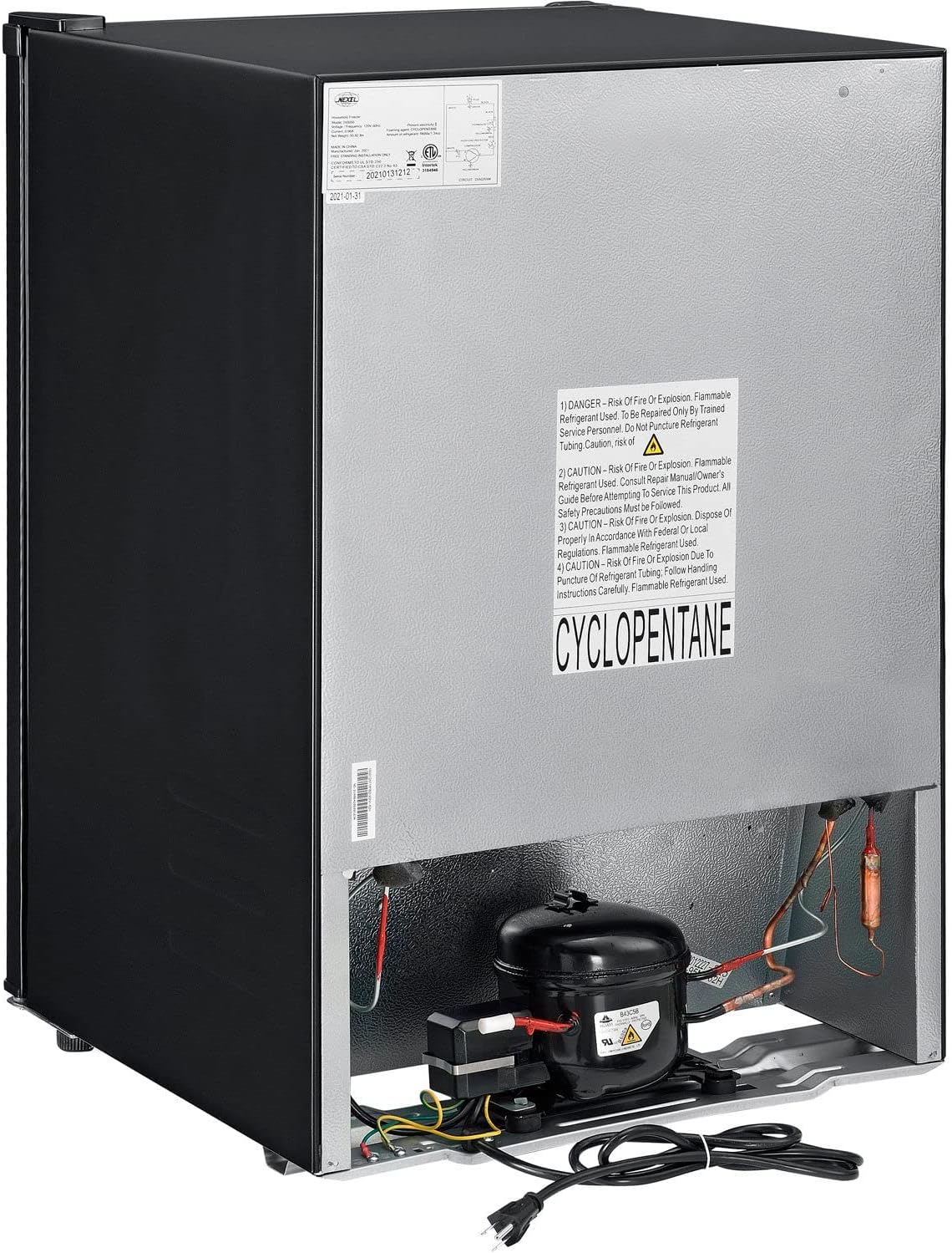 Keep items frozen without compromising on space with this Compact Upright Freezer. Its sleek and compact design makes it perfect for use in hotel rooms, private offices, employee lounges, dorms, and medical facilities where its contents do not require lock-up. This freezer operates at a noise level less than 42 dB and falls within climate class T for consistent performance in climates ranging from 18°C - 43°C (64°F - 109°F). ETL/cETL, DOE, and E-Star certified. Measures: 21-11/16" W x 22-1/8" D x 33-5/32" H., Lot of 1