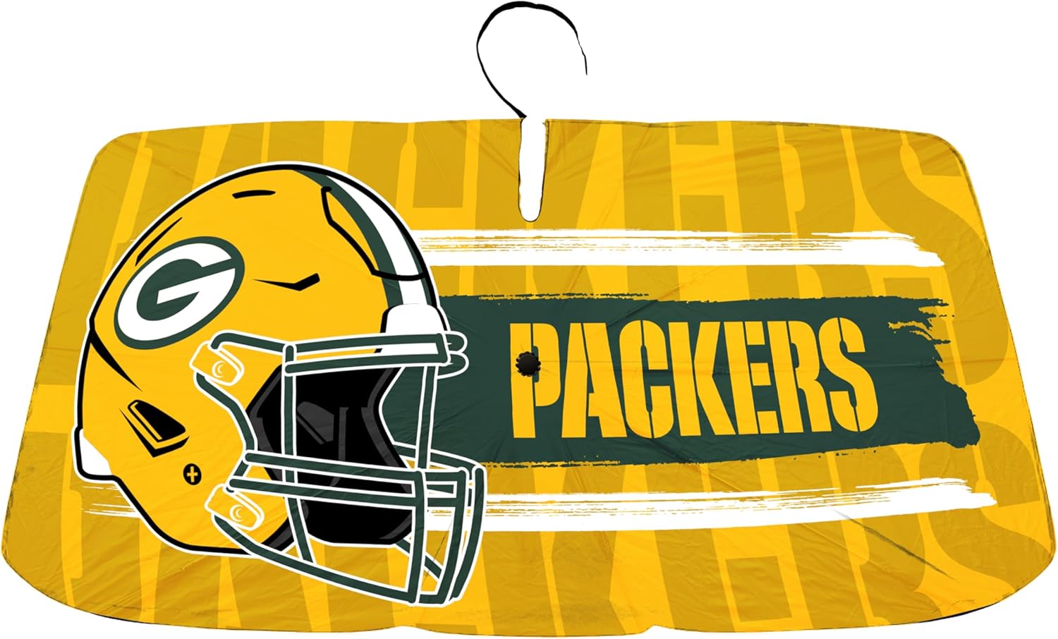 Boast your team pride with this large officially licensed team sun shade! Not only does it look great but it also blocks 99% of UVA and UVB rays to help keep your car from getting too hot. Windshield shades also block direct sunlight from your car's interior, keeping leather and upholstrey looking good for years. Windshield shades also block direct sunlight from your car's interior, keeping leather and upholstrey looking good for years. The flexible material allows it to easily fold for storage when not in use. The size and shape are one size fits most for convience. Measures 31"x57" when unfolded. Officially Licensed by the NFL.