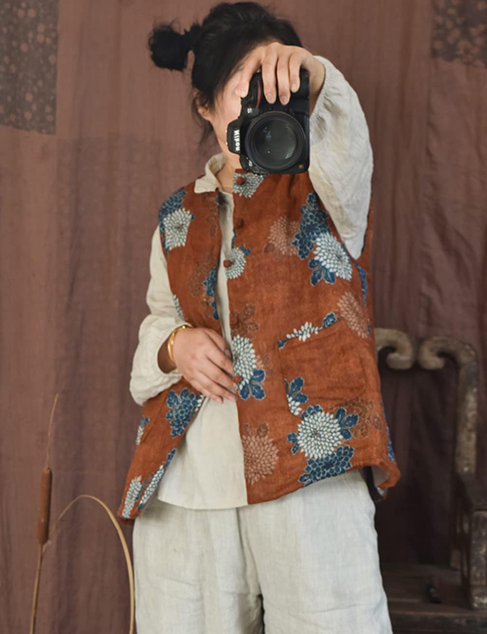 Womens Thin Quilted Lightweight Vest Cotton Linen Printed Spring Vintage Padded OutwearColor difference:We strive to make our colors as accurate as possible; however, due to individual monitor settings, we cannot guarantee that the color you see on your screen is the exact color of the product. Size difference: This size information is just for reference only, and allow 1-2cm (0.4-0.8") differences due to manual measurement. Wash Recommended With Cold Water/Do Not Bleach/Hang Or Line Dry/Wash with like colours,that will increase the durability of your clothes.