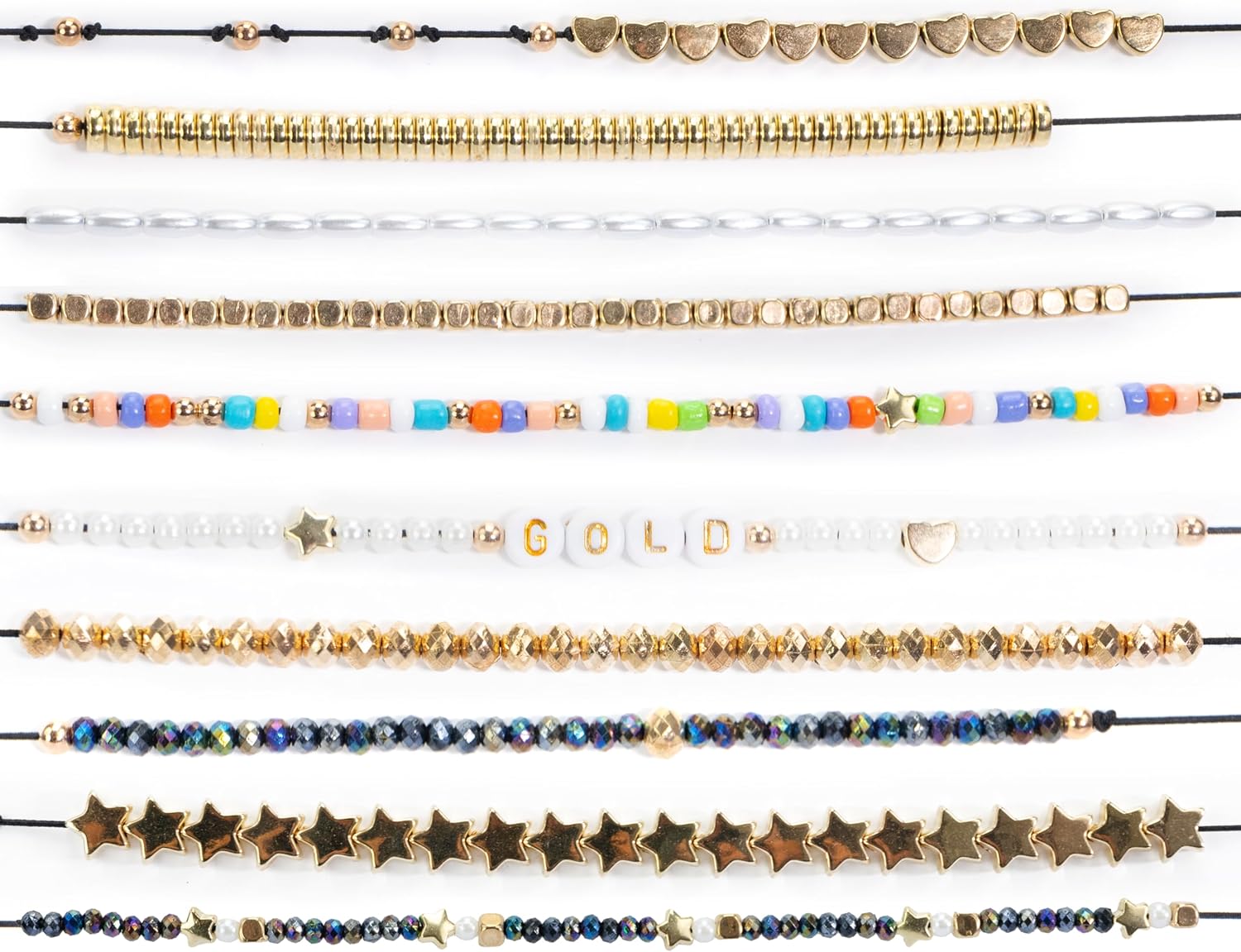 | Included Components | 600pcs gold, white, colorful beads and elastic thread |
