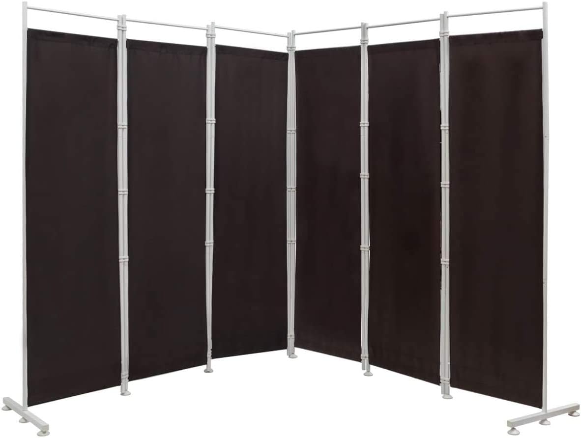 Description:This room divider can perfectly offer you a private space.This 6-panel room divider is made of premium polyester fabric and high quality steel frame, which makes it sturdy and durable for long lifespan. And the panels are connected with durable buckles, so you can adjust the direction of this screen as your need at any time. Besides, the foldable design could help you to easily adjust the position according to your demands. It is suitable for living room, bedroom, restaurant or office. Certainly, it can perfectly meet your requirements.Features:The assembly process is simpleStylish appearance makes your room attractiveAdjustable enlarged foot pads ensure the stabilityIdeal for living room, bedroom, restaurant or officeIt can be used to divide a room or block the sunlightLightweight and foldable design makes it easy to move and storePlastic buckles can flexibly change the direction and tightly connectionSturdy and solid steel frame makes it sturdy and durable for long lifespanSpecifications:Color: As the picture shownMaterial: Polyester, steelOpening Dimension: 10 FT x 6 FTPackage Includes:1 X 6 Panel Folding Room Divider